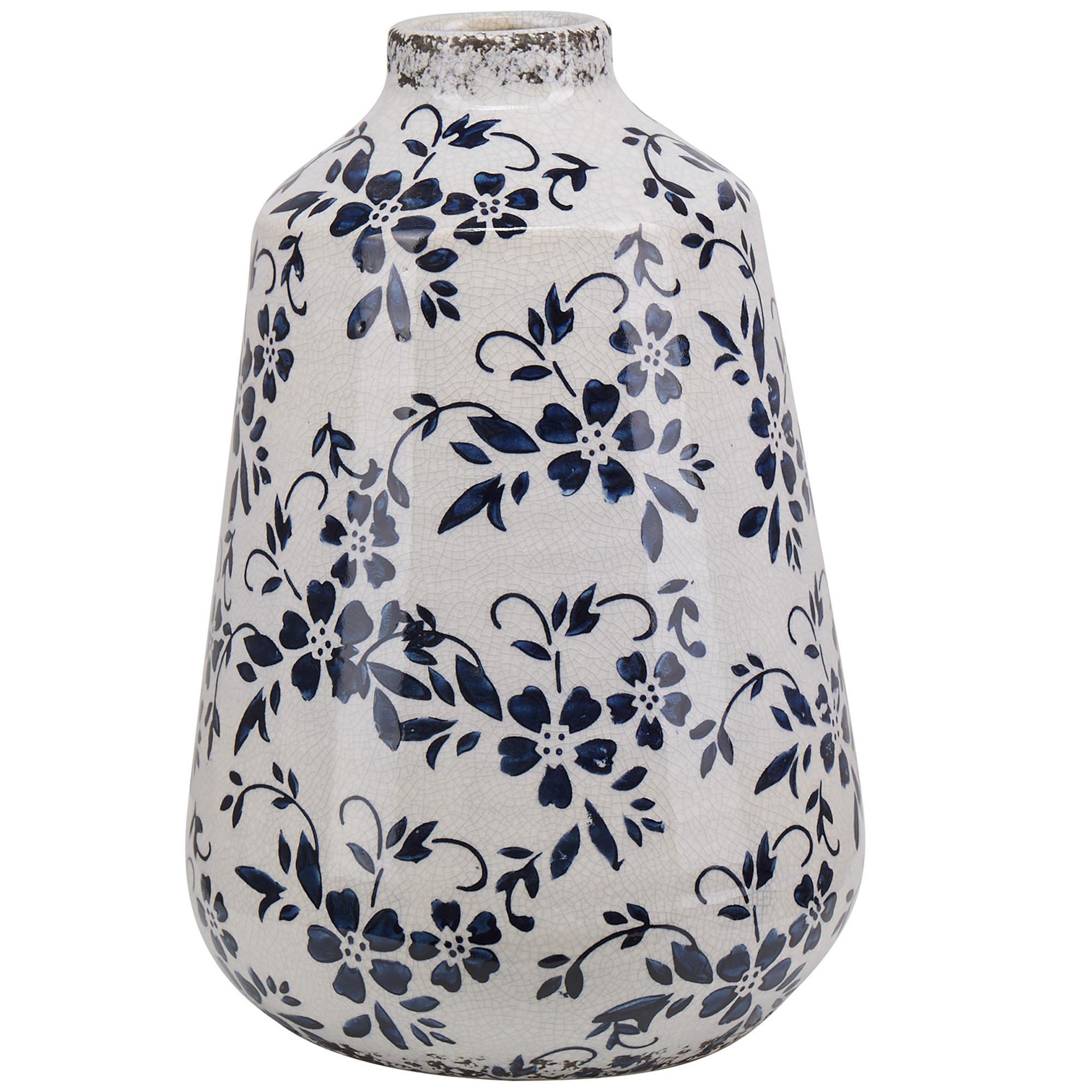 Vase en céramique à motif floral bleu marine. Ajoutez une touche rétro à votre intérieur avec ce vase décoratif effet vieilli. On adore le joli motif floral accrocheur et la peinture craquelé, qui donnent à la pièce un look unique. Ce vase est fabriqué en céramique, il est facile d'entretien et imperméable, vous pouvez donc l’utiliser pour les bouquets de fleurs fraîches.