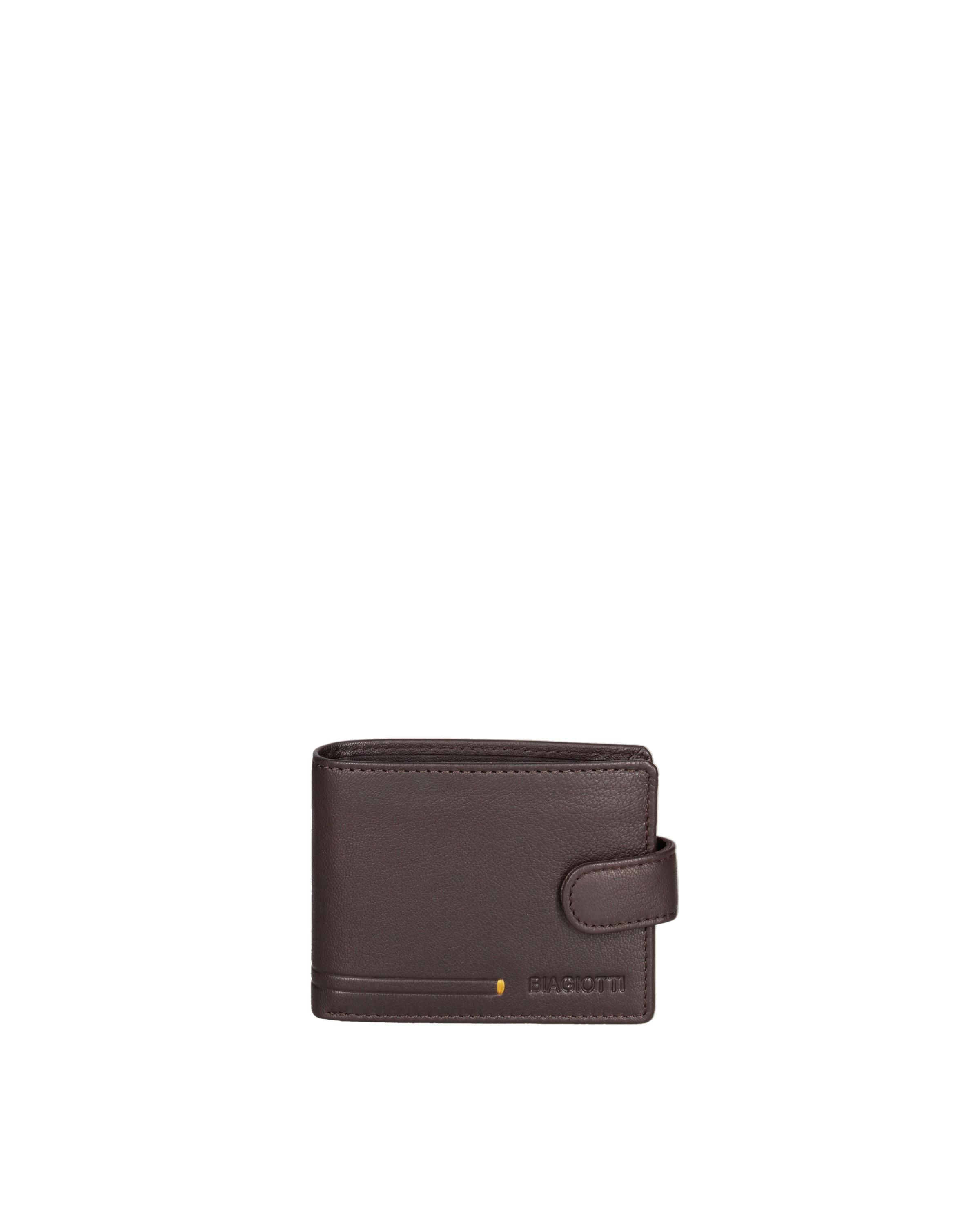 Portefeuille pour hommes. La fermeture se fait par un bouton pression. Les poches intérieures sont des porte-cartes. Les poches extérieures sont absentes. La bandoulière est manquante. Il manque la poignée. Il y a un compartiment interne. Le matériau extérieur est 100 % cuir véritable. À lintérieur, il nest pas doublé. Dimensions : 11x9x2 cm. Produit de mode