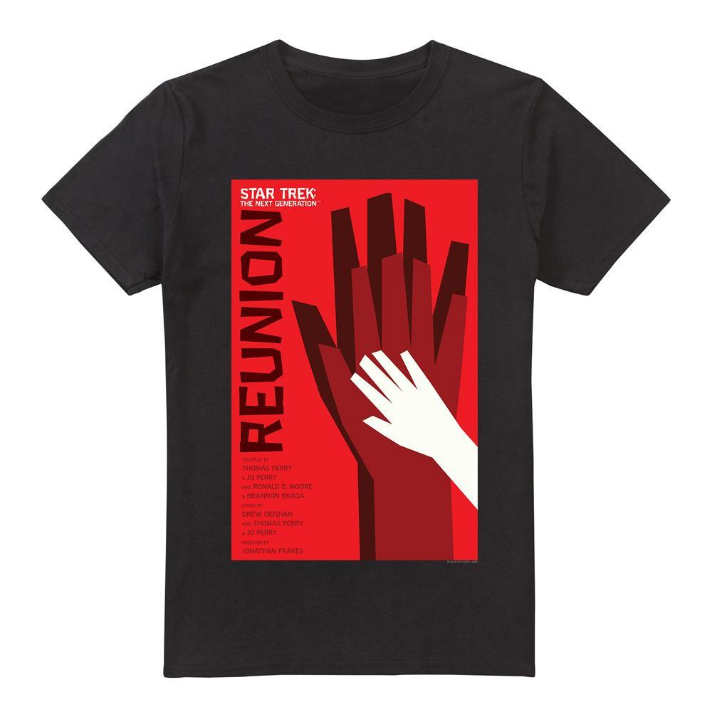 Ce T-shirt présente un imprimé graphique saisissant inspiré de "Star Trek: The Next Generation" Saison 4, Épisode 7, intitulé "Réunion". Le design capture l'essence de l'épisode avec une représentation audacieuse et artistique, en faisant une pièce unique pour les fans de la série.