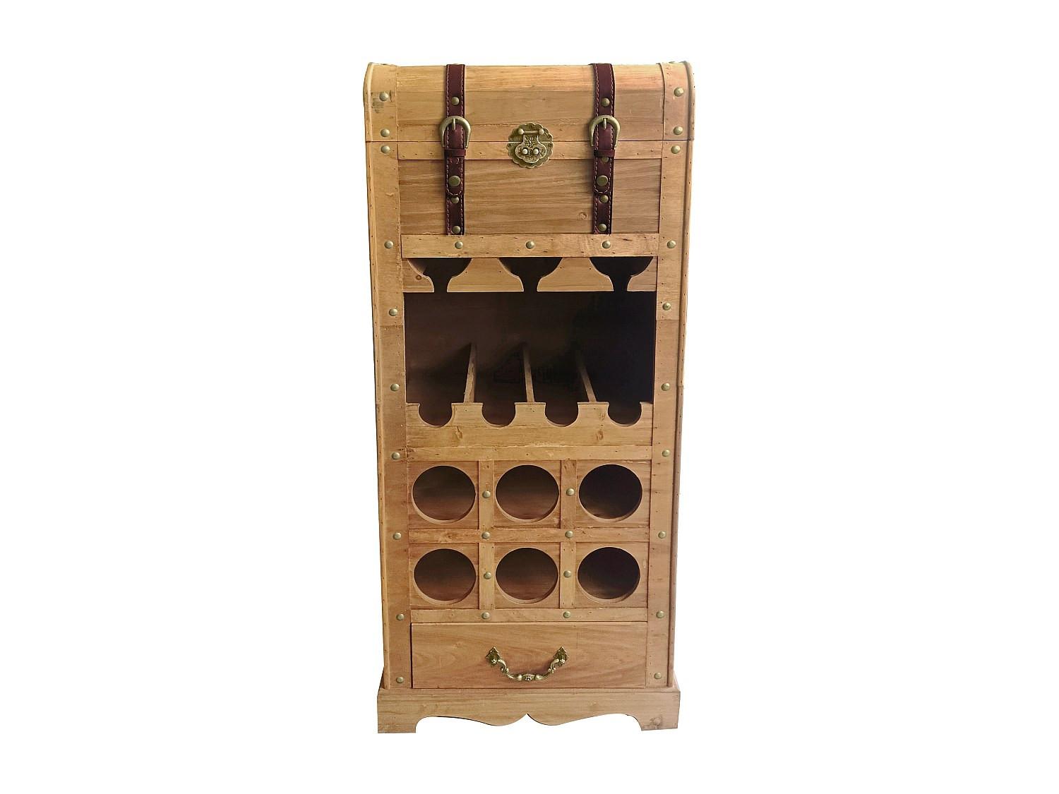 Optimisez votre espace avec le range bouteilles avec coffre intégré CAVINA, pensé pour réunir organisation, praticité et matériaux naturels. Sa structure en bois de sapin et MDF, associée à des lanières en cuir, met en valeur un aspect rustique qui trouve facilement sa place dans une salle à manger ou une cuisine.