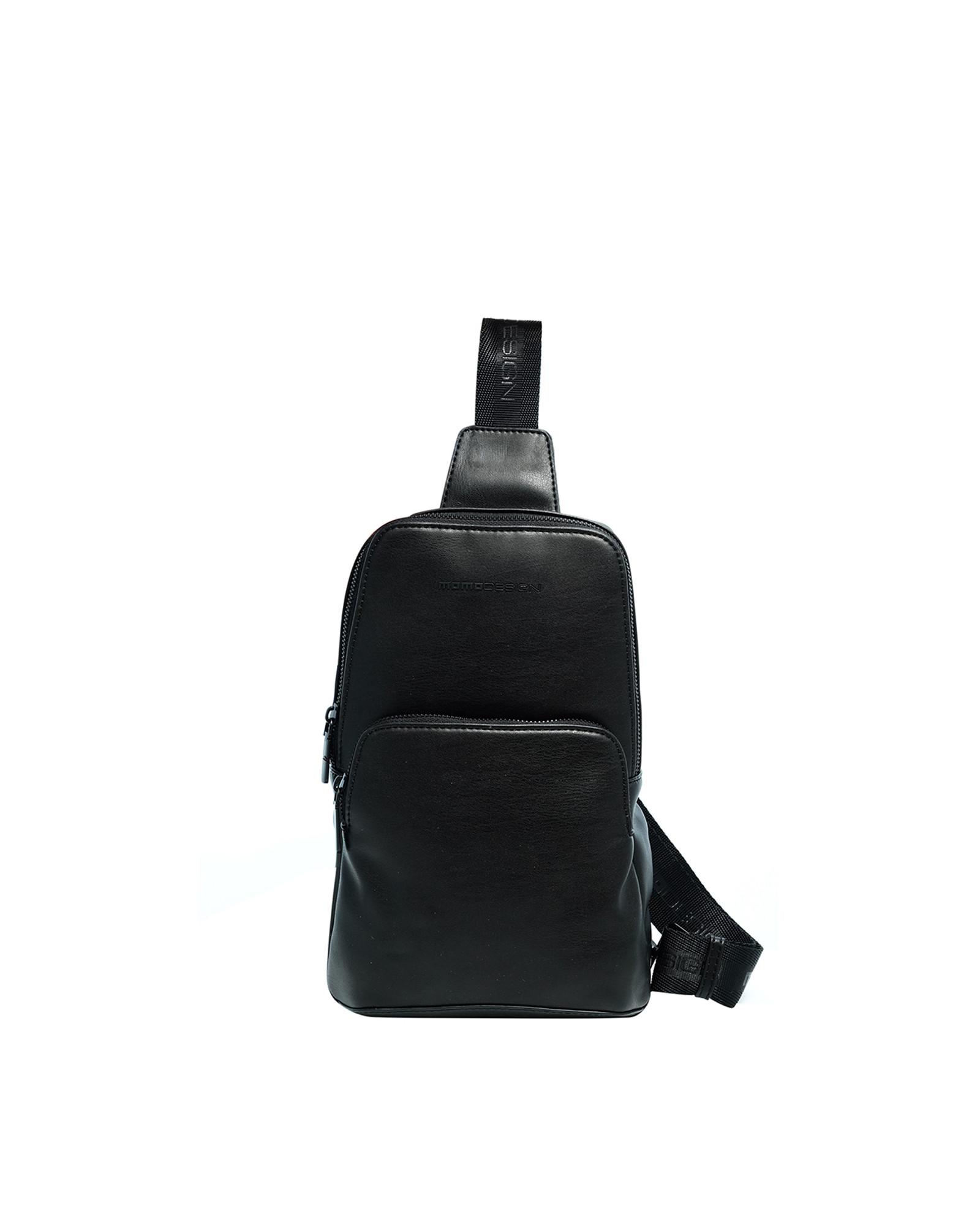 Sac bandoulière pour homme. La fermeture est avec zip. Les poches intérieures sont une avec fermeture éclair. Les poches extérieures sont une sur le devant avec fermeture éclair. La bandoulière est réglable en tissu. Il manque la poignée. Il y a un compartiment interne. Le matériau extérieur est en polyester. À lintérieur, il est doublé en tissu 70 % coton - 30 % polyester. Dimensions : 17x34x9 cm. Produit de mode