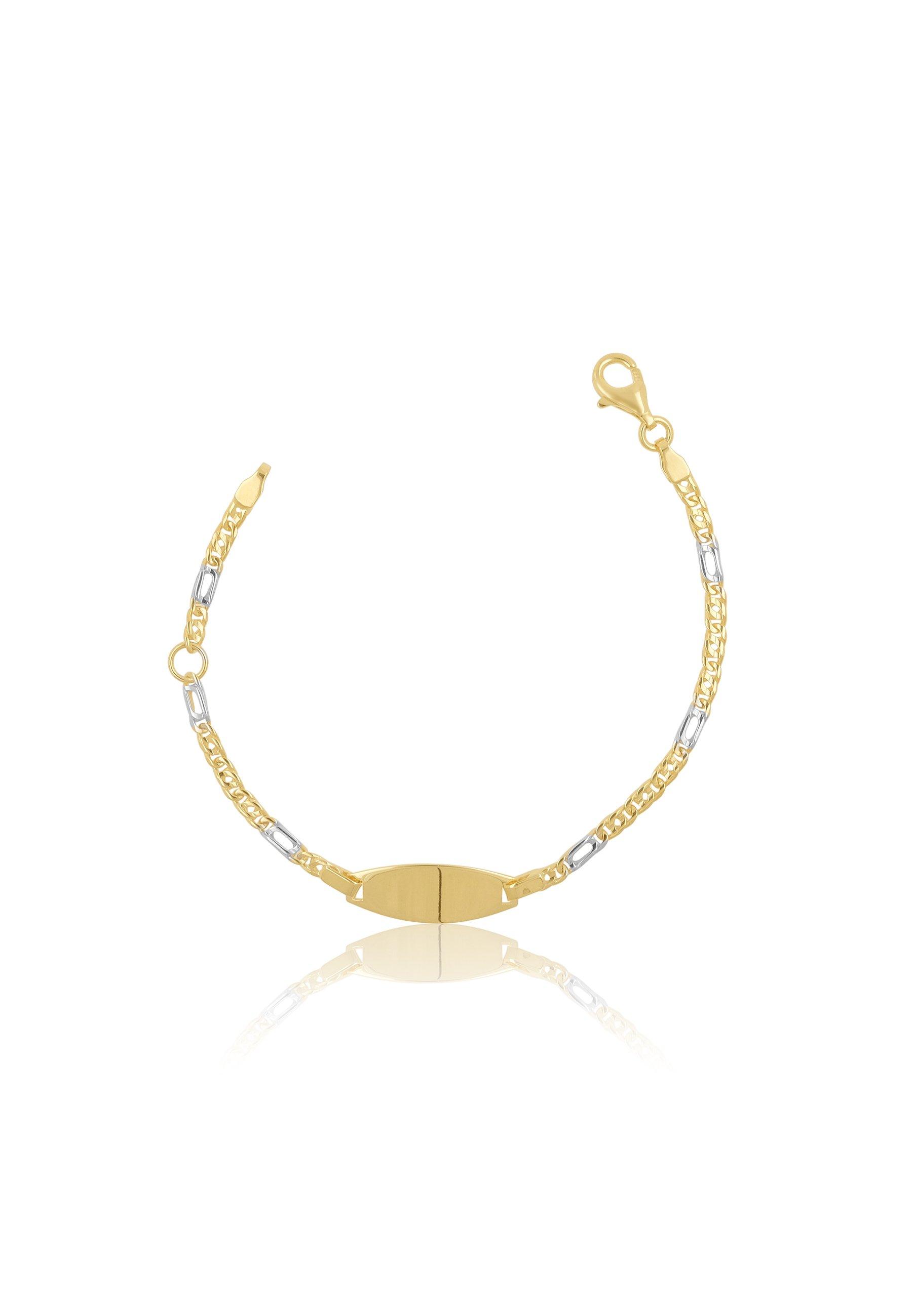 MUAU Schmuck Bracelet d'identité fantaisie en or jaune 585 ovale 2,3mm, 14cm