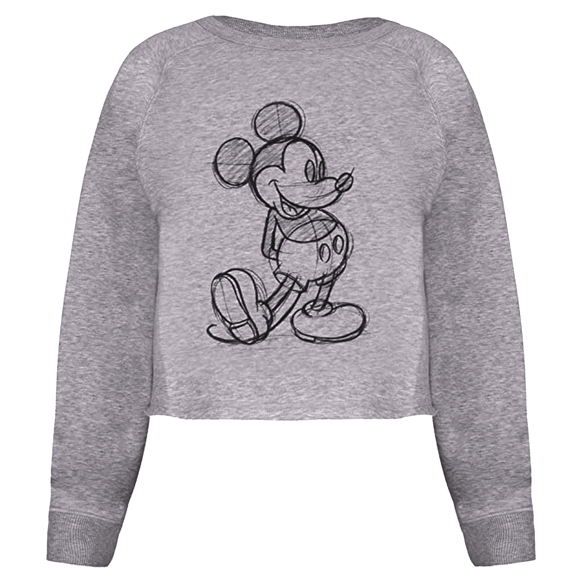 Ce sweat court présente un graphique ludique de Mickey Mouse de style croquis sur le devant, ajoutant une touche de charme classique à une silhouette moderne. Le design confortable en fait un ajout polyvalent à une garde-robe décontractée.