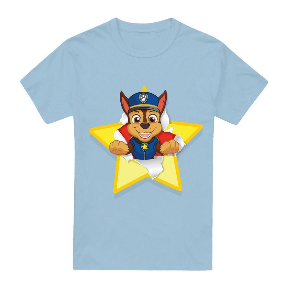 Ce T-shirt présente un imprimé vibrant de Chase de la Pat' Patrouille, jaillissant à travers une étoile jaune. Le design classique à manches courtes en fait un ajout polyvalent à toute garde-robe décontractée.