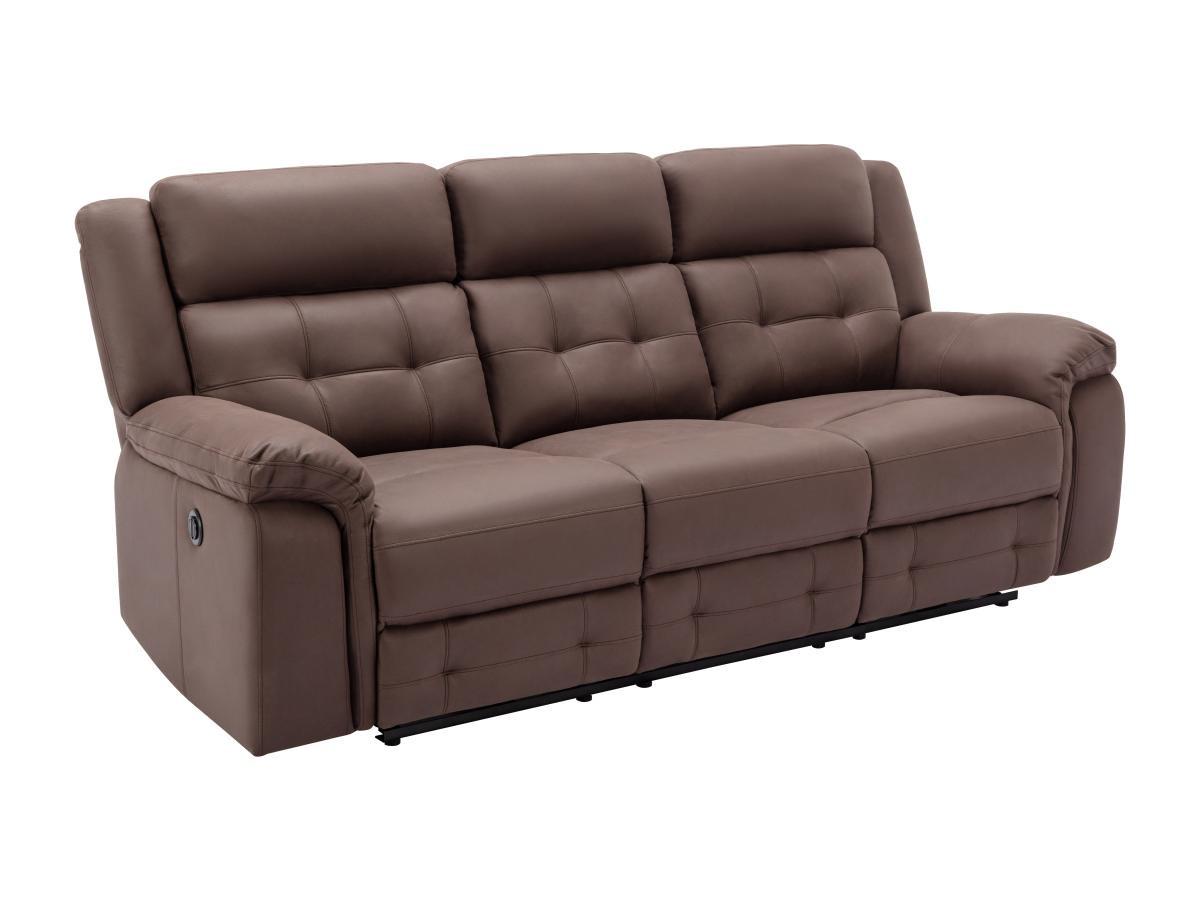 Vente-unique Canapé 3 places relax électrique en microfibre aspect cuir vieilli marron ORTIANO