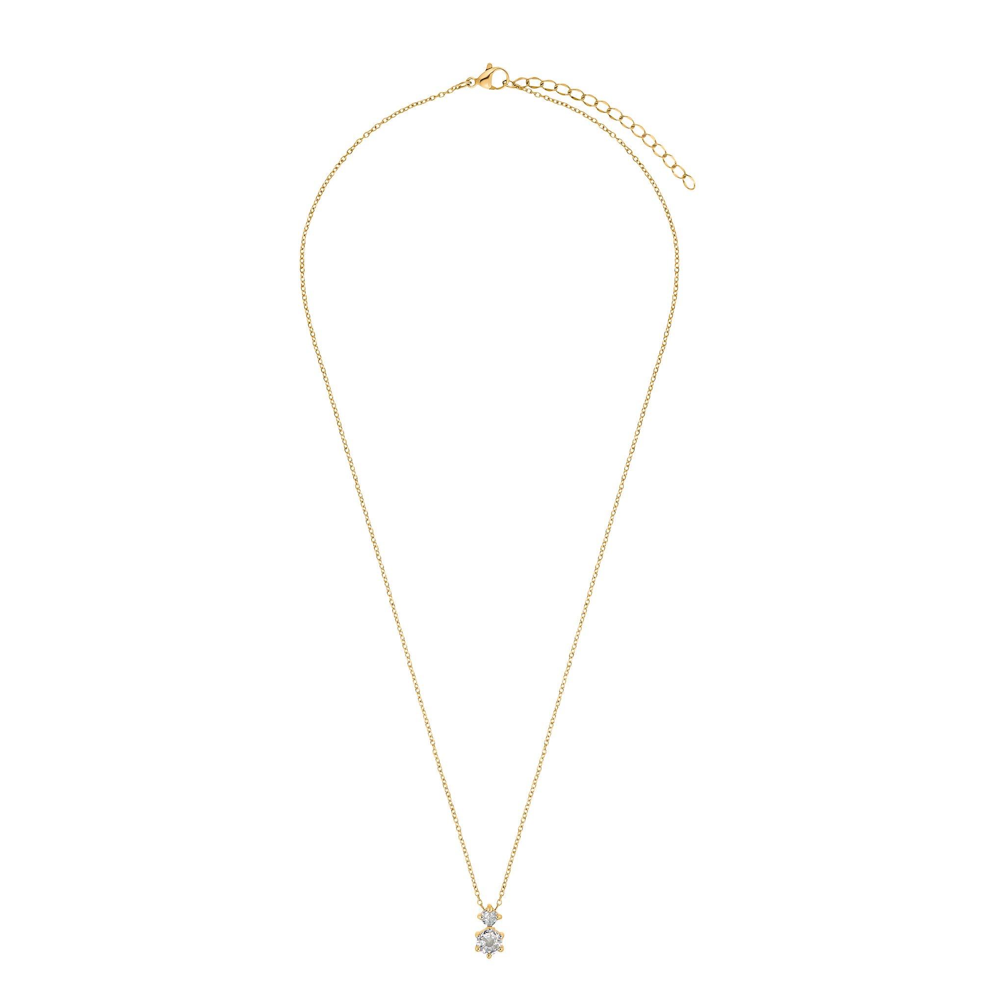 Élégance classique et beauté de rêve : ce collier délicat brille grâce à deux pierres scintillantes qui rappellent de petites étoiles grâce à la monture à griffes. Ce bijou filigrane diffuse une touche de glamour et s'intègre en même temps dans la vie quotidienne. Il donne la touche finale aux tenues d'affaires sérieuses, apporte une touche de noblesse aux loisirs et enchante par son understatement et sa noblesse en soirée. Des bijoux que l'on ne veut plus quitter...