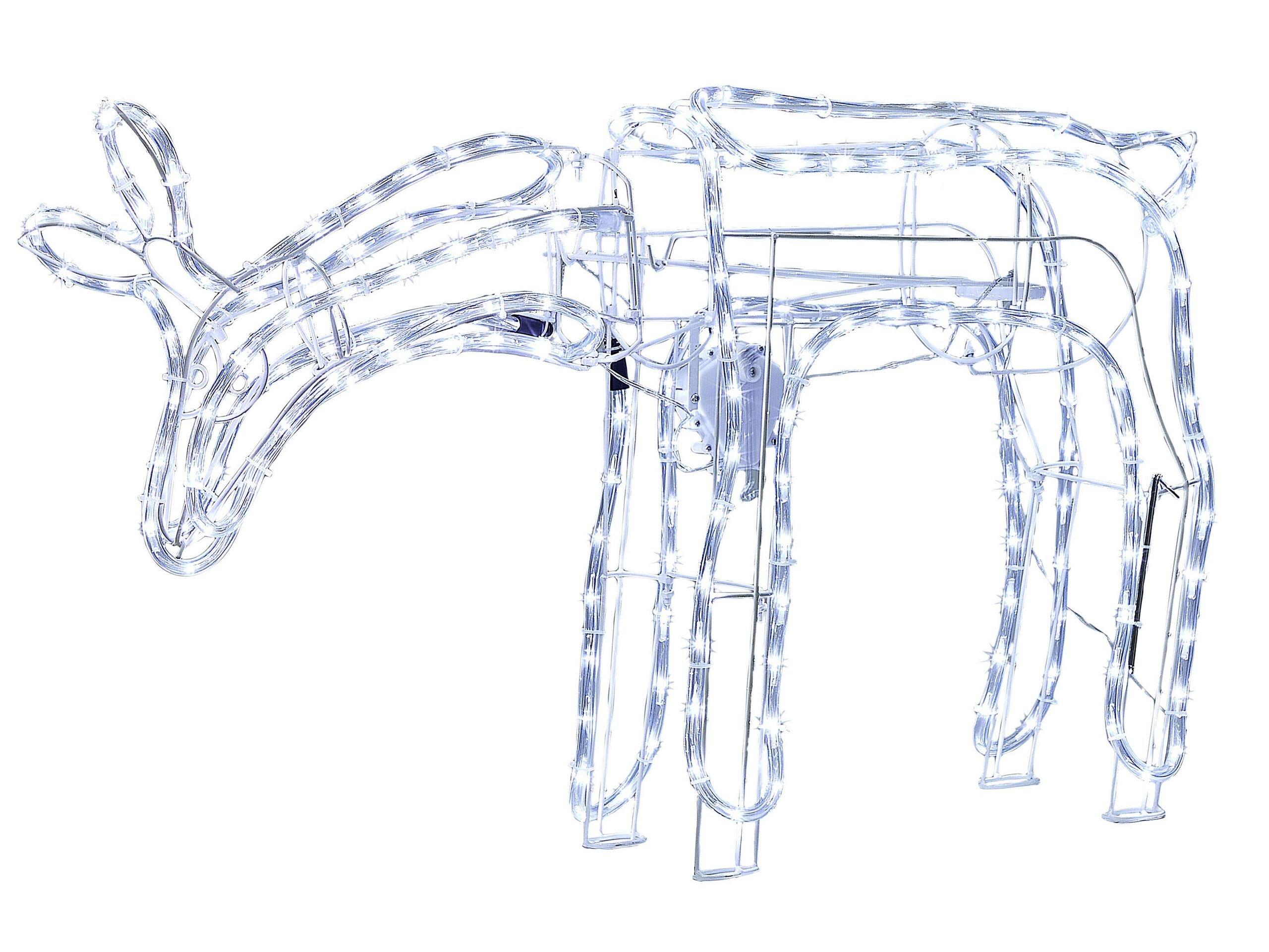 Déco de Noël lumineuse. Découvrez l'incarnation de l'enchantement avec ce chevreuil animé à LED. Conçue pour l'intérieur et l'extérieur, cette gracieuse créature à la tête mobile ajoute une touche d'émerveillement à votre décor. Regardez-le prendre vie, sa tête animée ajoutant un élément dynamique et hypnotique à votre environnement. Embrassez la beauté de la nature et de la technologie combinées avec ce captivant chevreuil.
