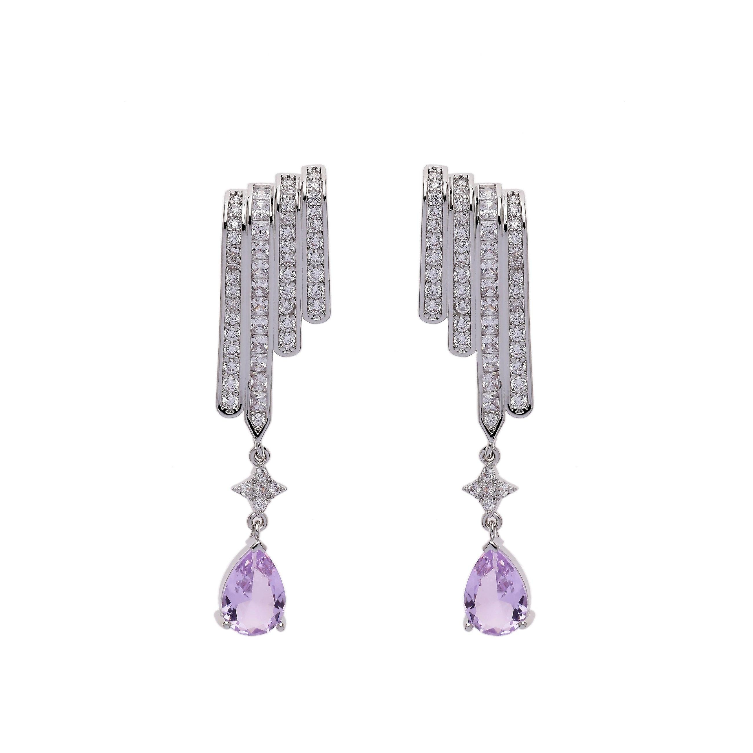 Sublimez votre style avec ces boucles d'oreilles pendantes Ailes d'Ange. Ornées d'ailes serties de cristaux étincelants et d'une délicate pierre en forme de larme lavande, elles respirent l'élégance et le charme. Parfaites pour les grandes occasions comme pour une tenue chic au quotidien, ces boucles d'oreilles allient avec brio sophistication et fantaisie. Dimensions : 1,1 cm x 5,2 cm | Placage : Rhodium | Fermoir : Tige et fermoir