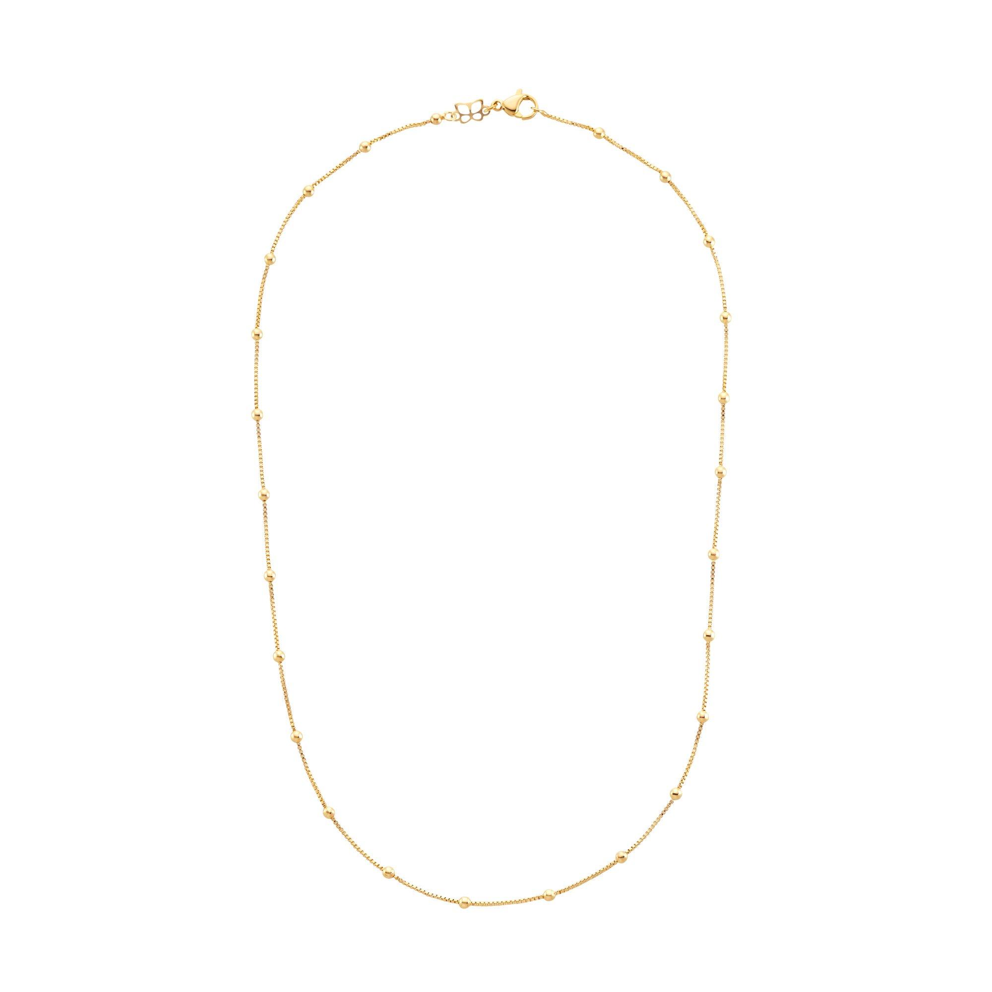 Le rond doit entrer dans le rectangle... Que tu sois fan ou non des métaphores sportives, tu sais que les contraires s'attirent et tu aimes jouer avec eux. Ce collier délicat te convient parfaitement ! Le design simple et anguleux du collier vénitien est égayé par des petites boules rondes, ce qui lui donne une touche de raffinement. Ce collier est un excellent basique pour les looks minimalistes et se porte aussi merveilleusement bien en layering.