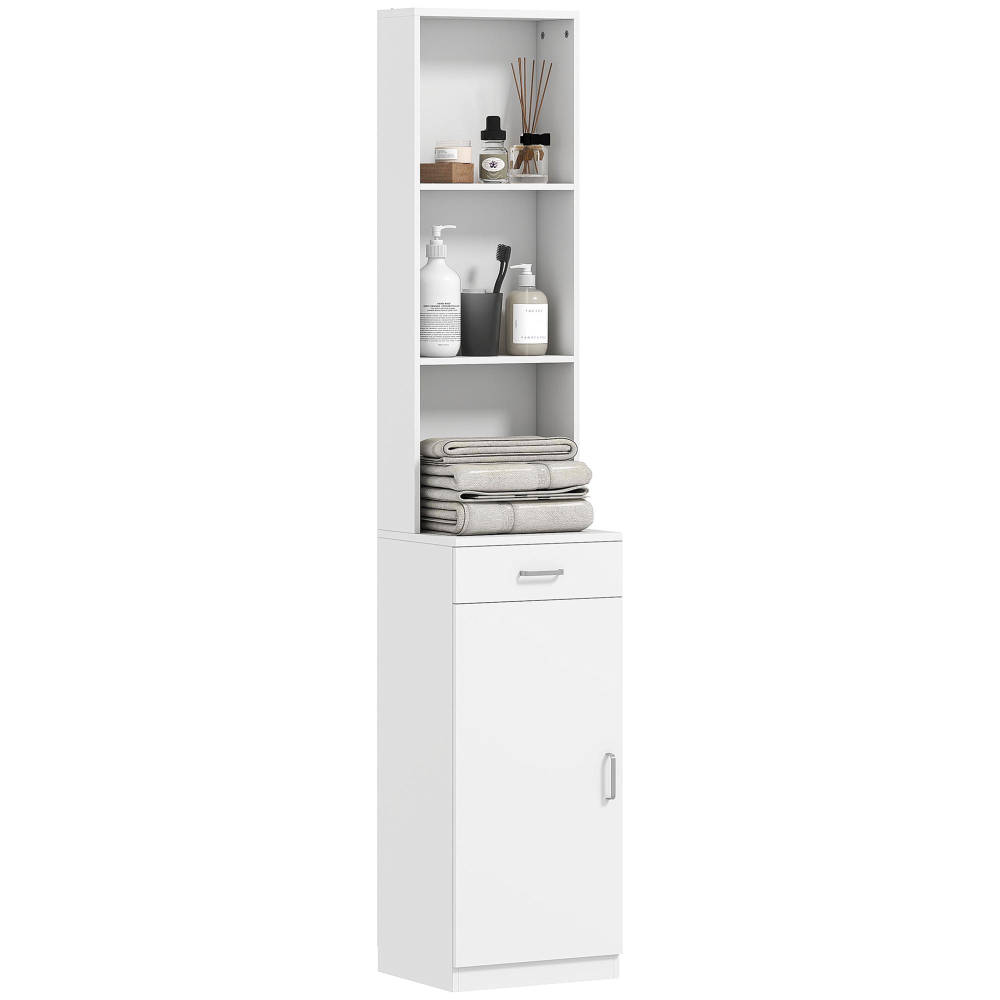 Dites adieu au chaos de votre salle de bain avec style. Le meuble de salle de bain HOMCOM est ingénieusement conçu pour s'intégrer parfaitement aux espaces restreints tout en offrant un maximum de rangement. Doté d'un placard fermé avec une étagère réglable, d'un tiroir et de trois compartiments ouverts, ce meuble de salle de bain élégant vous permet de garder tout organisé et à portée de main. Grâce à sa fonction anti-basculement intégrée, ce meuble de salle de bain allie fonctionnalité et élégance à votre salle de bain, cuisine ou buanderie.
