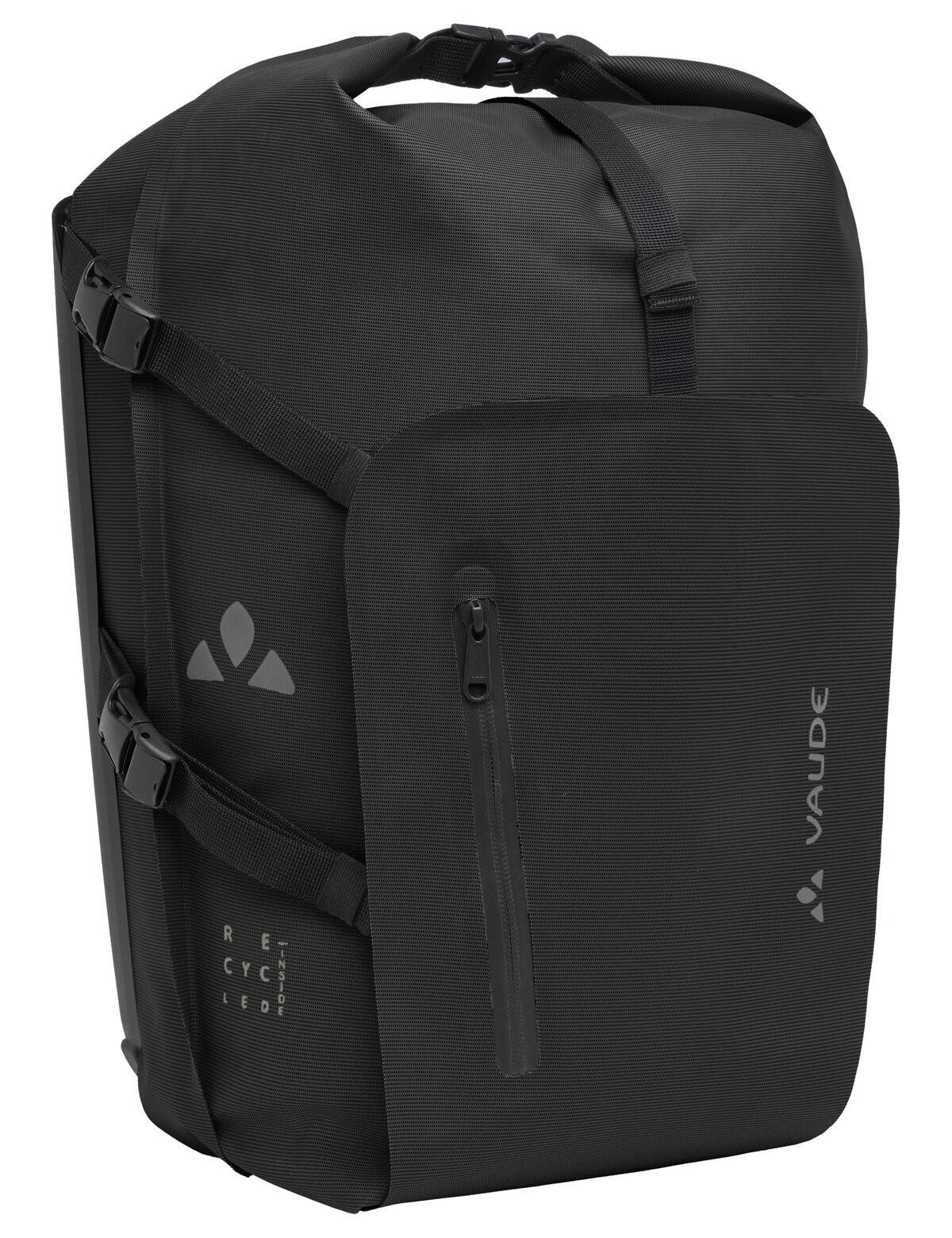 La sacoche de vélo Free Cargo munie de jointures thermosoudées étanches offre un beau volume de 24 litres et ainsi suffisamment de place pour transporter des affaires tant dans la jungle urbaine que pour les microaventures dans les environs le week-end. Le sac à ouverture large s'ajuste en souplesse au chargement grâce à la fermeture roll-top. Un compartiment suspendu dans le sac permet de ranger des documents, des stylos, etc. avec clarté. Il est possible d'accrocher un paquet, qui n'entrerait pas dans le sac, derrière le rabat flexible sur l'avant à l'aide de 2 sangles de compression, tout comme une tente, des vêtements mouillés ou des accessoires d'équipement encombrants comme un packcraft ou un SUP. Les objets particulièrement hauts peuvent être sécurisés à l'aide d'une extension de sangle supplémentaire. La poche plate avec zip imperméable sur le rabat permet un accès rapide à un porte-monnaie ou un smartphone. Des éléments plastiques issus de véhicules mis au rebut, comme les pare-chocs, ont été revalorisés pour élaborer le dos à coque dure ultrarobuste de la sacoche. Le système de fixation permet de monter ou de démonter la sacoche en un geste et s'ajuste à l'aide de molettes aisément manipulables. Les crochets QMR 2.0 éprouvés et verrouillables (p. ex. avec un cadenas Abus 145/10, non compris dans la livraison) conviennent pour des tubes de porte-bagages ronds jusqu'à 16 mm de diamètre, le crochet Rail Hook sécurisant la sacoche en bas sur les terrains plus accidentés. Des imprimés réfléchissants à l'avant et sur les côtés du sac garantissent une meilleure visibilité dans l'obscurité. Le chargement maximal s'élève à 12,5 kg. Compris dans la livraison : 1 sacoche