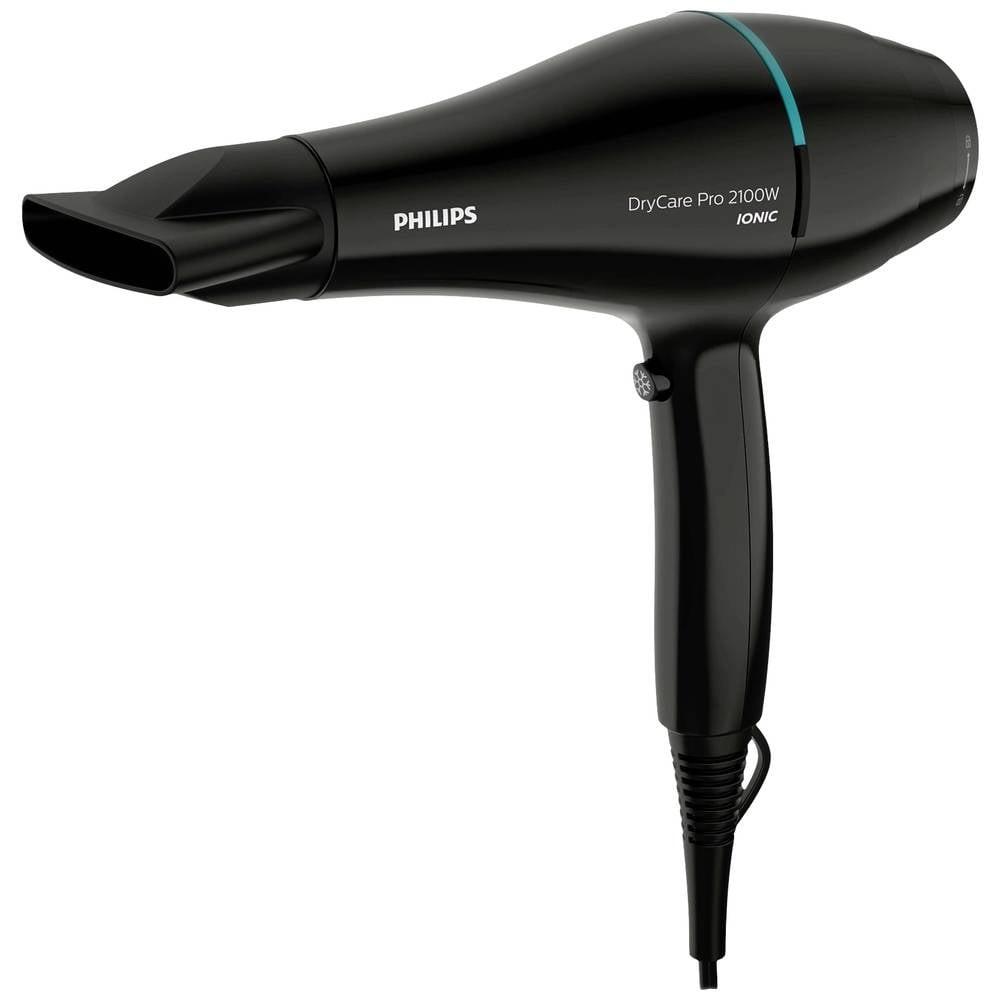 Le sèche-cheveux Philips Pro Philips est équipé d'un moteur AC professionnel avec une vitesse d'air pouvant atteindre 130 km/h, ce qui permet d'obtenir des résultats rapides et professionnels. Le réglage ThermoProtect garantit une température optimale pour la protection contre la surchauffe. Puissant moteur AC Le sèche-cheveux Philips Philips Pro est équipé d'un puissant moteur AC et a été conçu pour le marché professionnel. Il propulse l'air jusqu'à 130 km/h pour des résultats efficaces et rapides. 2 100 W de puissance Ce sèche-cheveux d'une puissance de 2 100 W fournira un débit d'air exceptionnel. La puissance du souffle vous permettra de sécher et de mettre en forme rapidement votre coiffure. Température ThermoProtect Le réglage de température ThermoProtect garantit une température de séchage optimale et offre une protection supplémentaire contre la surchauffe avec le même flux d'air puissant, pour des résultats optimaux, tout en douceur. Fonction ionique Les ions chargés négativement éliminent la charge statique, maintiennent les cheveux et lissent la couche extérieure de la chaussure. Résultat : des cheveux lisses et brillants. Touche air froid La touche air froid est une fonction professionnelle dont vous ne pourrez plus vous passer. Elle génère un flux d'air froid intense permettant de fixer votre coiffure. Commande précise Vous avez la possibilité d'adapter la puissance de l'air et la chaleur pour réussir à tous les coups votre coiffure. Six réglages différents permettent un contrôle optimal pour un style précis. Concentrateur 9 mm Le concentrateur de 9 mm concentre le flux d'air pour un style précis d'une zone donnée. L'accessoire est idéal pour une utilisation pendant le brossage en cas de séchage et de coiffage simultanés.