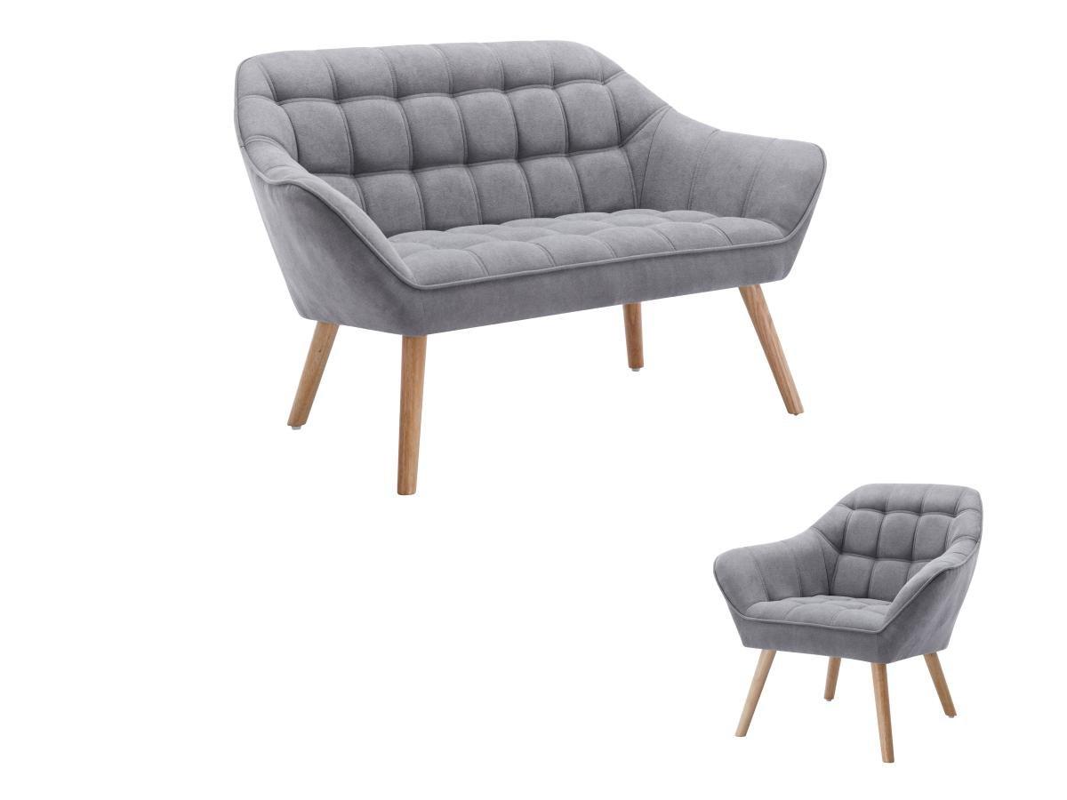 Vente-unique Canapé 2 places et fauteuil en tissu gris CASERTA