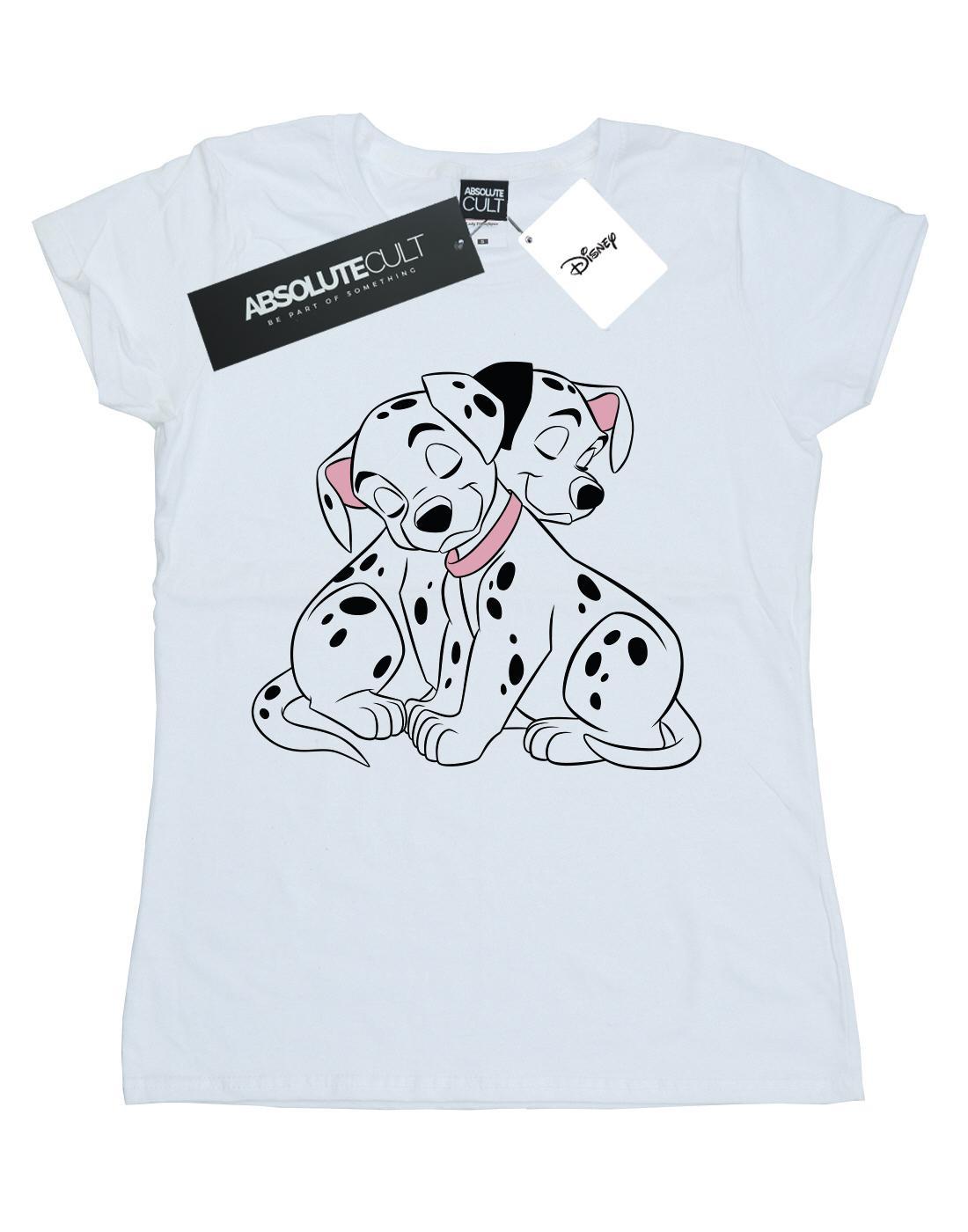 Ce T-shirt présente un charmant imprimé graphique de deux chiots dalmatiens des 101 Dalmatiens de Disney. Le col rond classique et les manches courtes offrent une coupe confortable et polyvalente, ce qui en fait un ajout charmant à toute garde-robe décontractée.