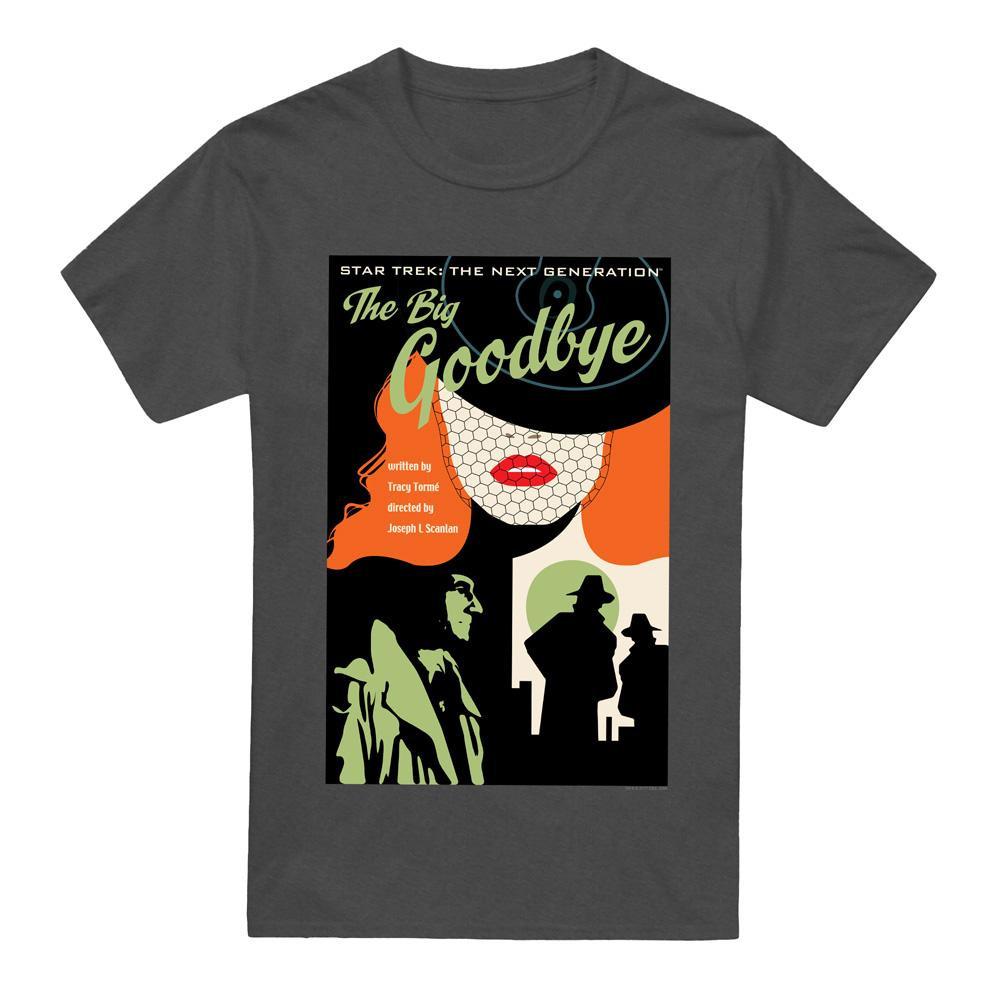 Ce T-shirt présente un imprimé graphique inspiré de « The Big Goodbye », saison 1 épisode 12 de Star Trek : The Next Generation. Le design capture l'essence de l'esthétique classique du film noir de l'épisode, en faisant une pièce distinctive pour les fans.