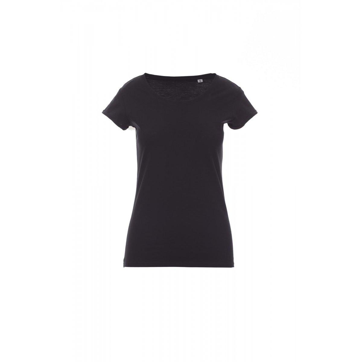 Ce t-shirt slim fit à manches courtes pour femme présente une large encolure arrondie et un col mixte spandex de 1 cm. Les manches sont finies avec un ourlet fin à bord vif, et les épaules ont une double couture intérieure. Il comprend également une couture latérale pour une silhouette flatteuse.