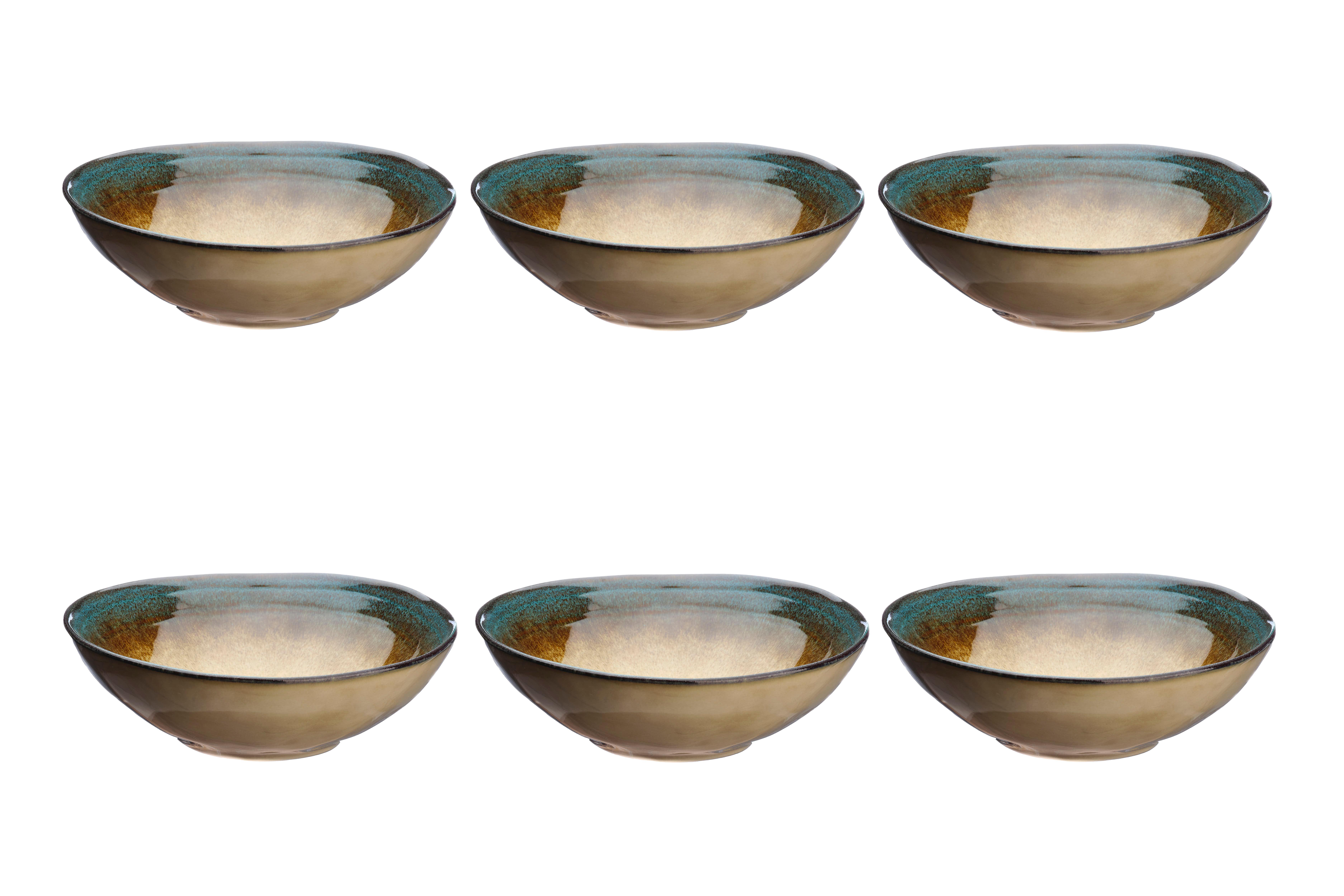 Contient : 6 bols Ø20 cm Collection REACTIV / Série ISLAND / Variation TERRE ET MER Fabriqué en grès avec vernis réactif Couleur : Kaki et Bleu Passe au lave-vaisselle, au micro-ondes et au four (180°C) Dimensions d'une pièce (L x l x H) 20 x 20 x 6,5 cm / Contenance 100 cl Livré dans un emballage incassable