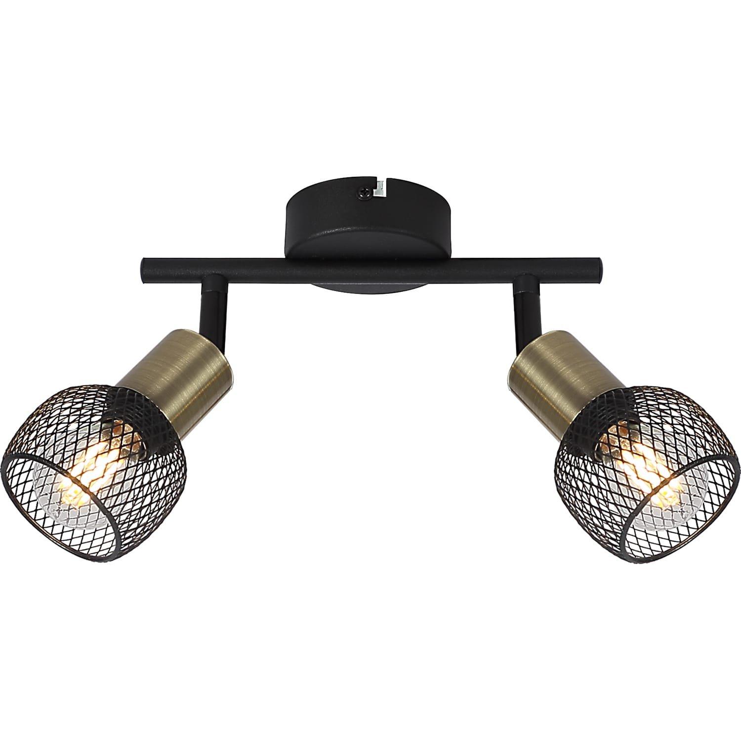 Ce spot de plafond de la série Fiastra impressionne par son design élégant en métal noir mat et laiton antique. Les deux écrans à grille métallique du spot de 22 cm de long peuvent chacun être équipés d'une ampoule E14 de votre choix. Cela vous donne la possibilité de déterminer la couleur et la luminosité de la lumière à votre guise et peut créer une ambiance élégante dans votre intérieur.