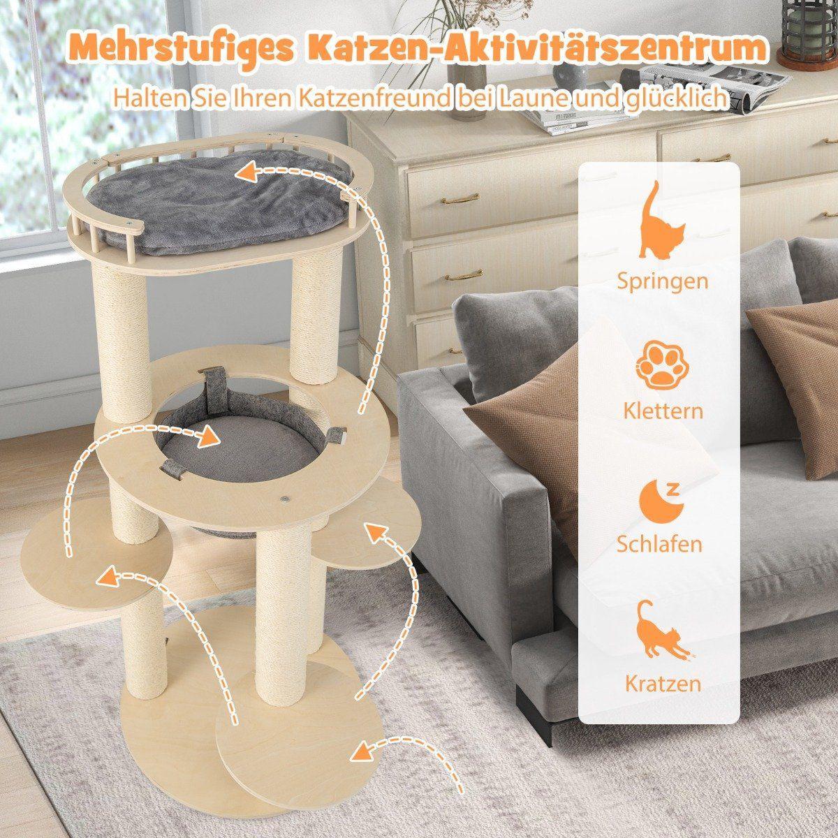 Northio Arbre à chat en bois à 6 étages avec hamac & 4 plans de couchage & 3 griffoirs 66 x 66 x 150 cm