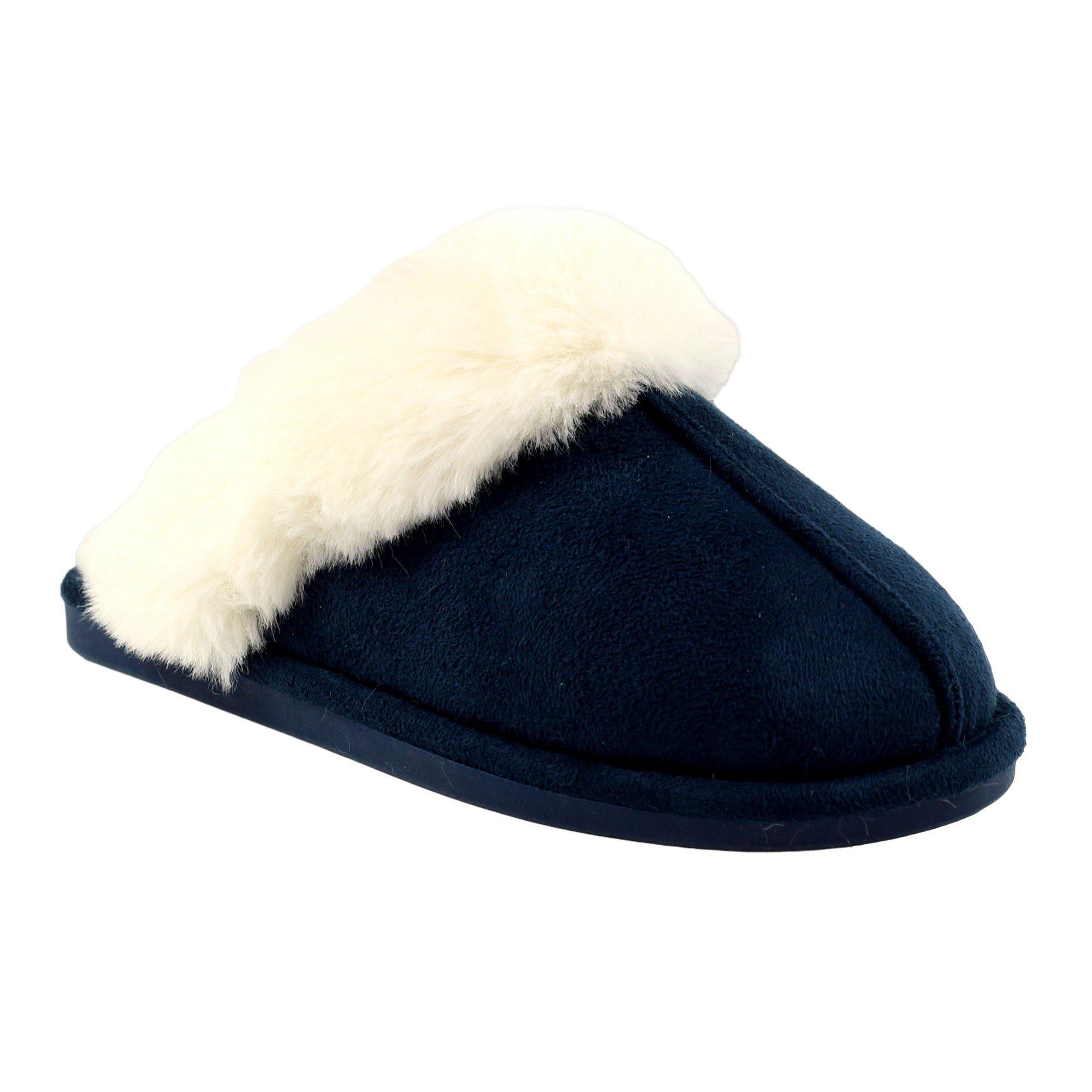 Style: Mules. Design/motif: Contrasté. Style du bout: Arrondi. Talon: Talon plat. Fermeture: À enfiler. Caractéristiques des matériaux: Durable. Dessus: Brossé, Polaire. Doublure: Fausse fourrure. Semelle intérieure: Rembourrée. Semelle extérieure: Synthétique.
