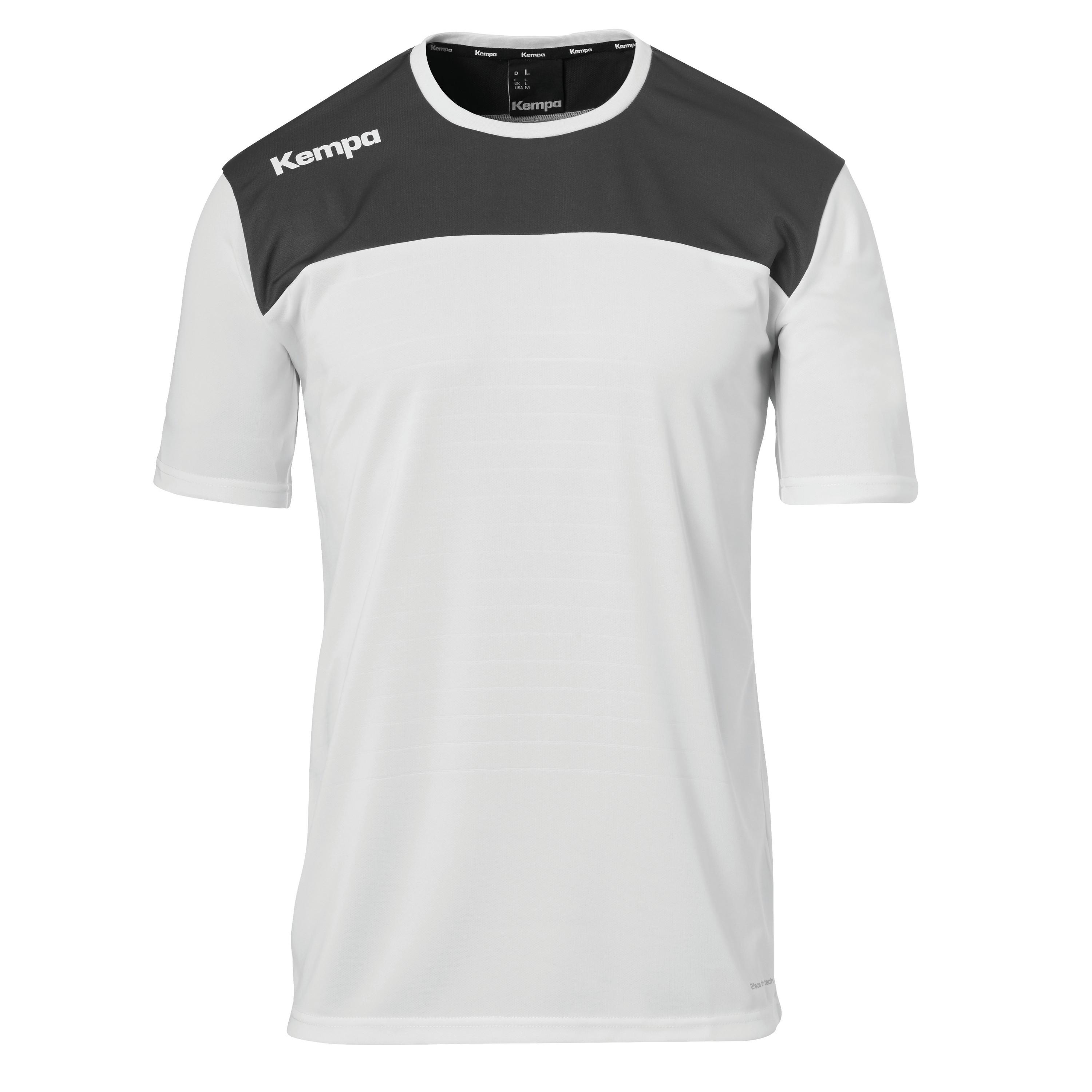 maillot col rond avec bande de propreté au cou- design coupé et cousu sur le devant et le dos- lignes gaufrées sur la face avant- Imprimés élastiques des logos Kempa et Kmatériel :100% polyester