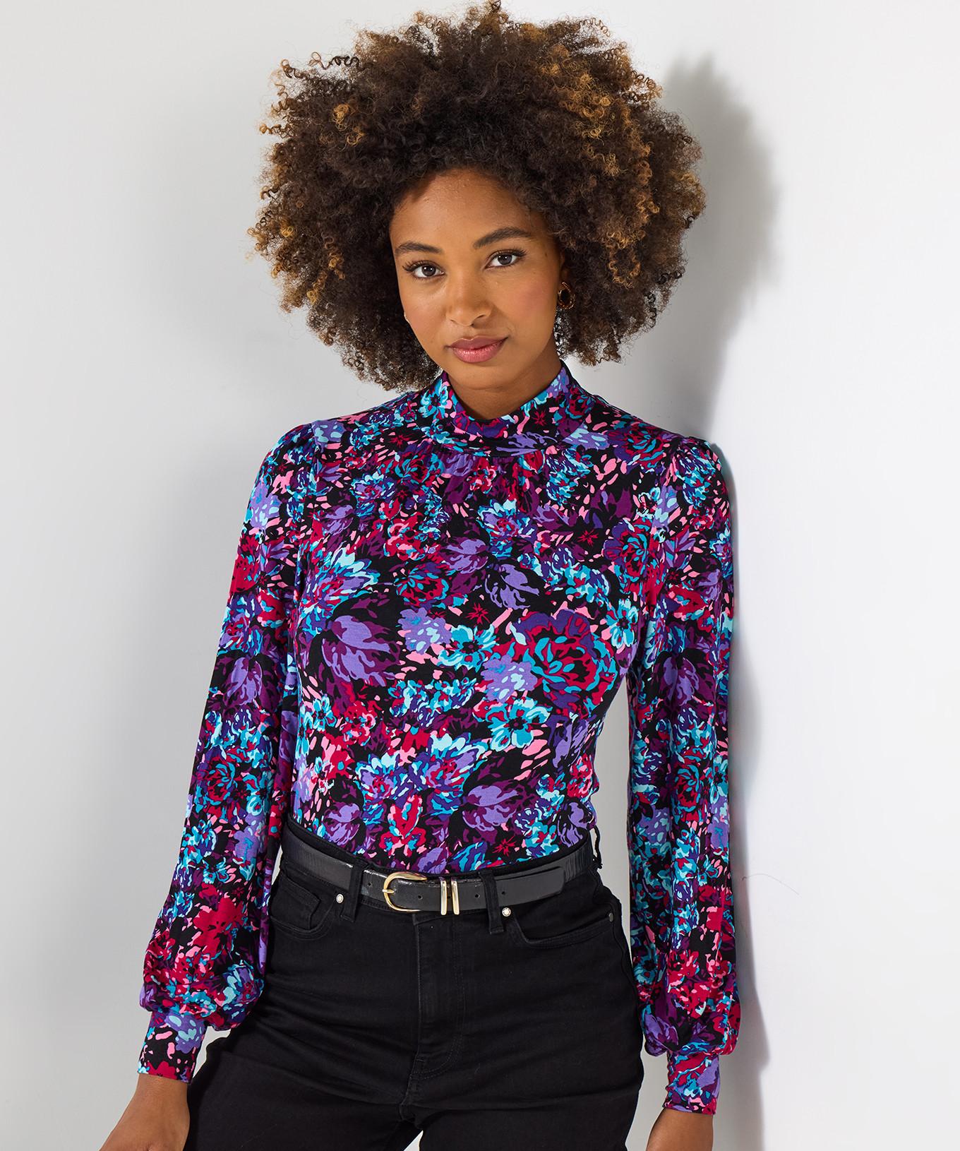 Joe Browns Haut en Jersey à Imprimé Floral Vif avec Col Montant