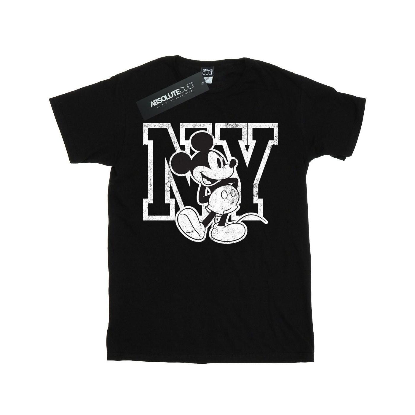 Ce T-shirt présente un col rond classique et des manches courtes, offrant une coupe confortable et polyvalente. Le design met en valeur un graphique 'NY' vieilli avec Mickey Mouse, ajoutant une touche ludique et vintage au vêtement.
