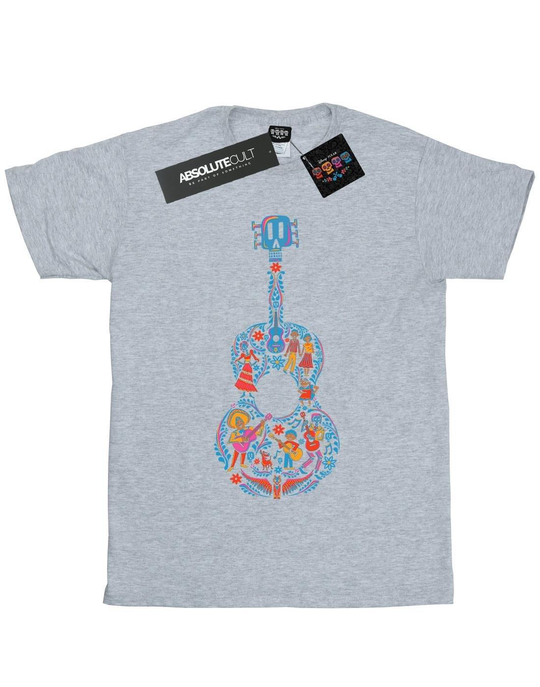 Ce T-shirt Coco présente un imprimé graphique vibrant d'une guitare, orné de motifs complexes et de personnages inspirés du film bien-aimé. Le design capture l'essence de la riche esthétique culturelle du film, en faisant une pièce distinctive pour les fans.