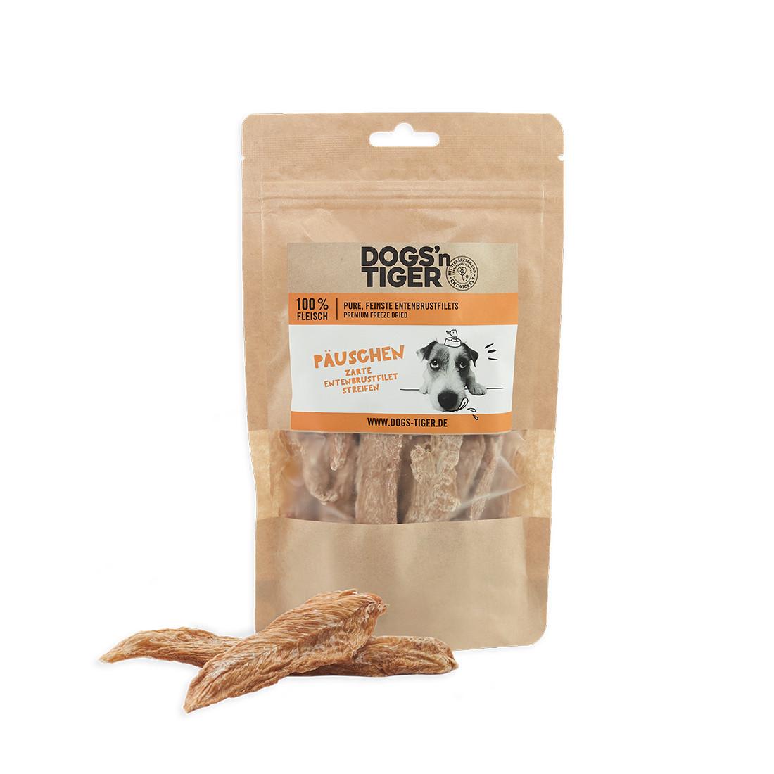 Friandise pour chien d'une qualité particulièrement élevée pour ton chéri, , Le pur filet de magret de canard sinon rien !, , Les friandises n'ont pas besoin de ChiChi, seulement de viande pure. Si ton chien aime le canard, rien ne pourra le retenir., , La lyophilisation permet de conserver toutes les vitamines et tous les ingrédients essentiels, ce qui fait de ce snack une expérience nutritive pour les chiens adultes entre deux repas., , Le snack doit être conservé dans un endroit frais et sec, à l'abri des rayons directs du soleil. L'"absorbeur d'oxygène" contenu dans l'emballage permet de conserver la fraîcheur du produit et ne convient pas à la consommation.