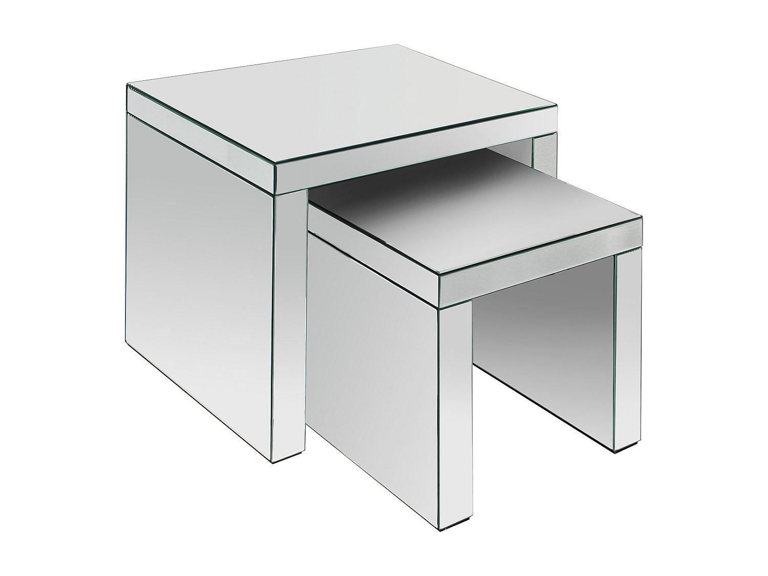 YERVINI se présente avec deux tables basses de formes carrées, conçues en MDF recouvert de miroir de 4 mm. Ce matériau capte la lumière et la reflète avec précision, créant des reflets nets ce qui contribue à élargir visuellement l’espace. Les lignes droites et les arêtes franches soulignent une approche minimaliste, tout en mettant en valeur la surface réfléchissante.