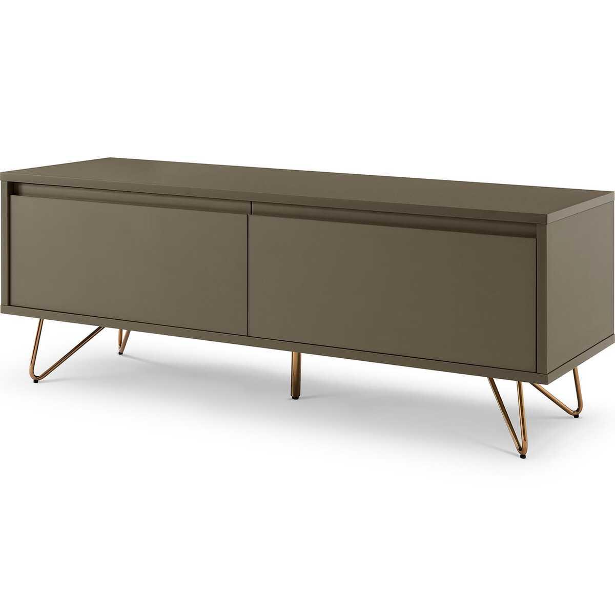Ce lowboard au design scandinave est un véritable accroche-regard dans votre salon. La combinaison de tons sobres et de pieds métalliques dorés fait de ce meuble TV quelque chose de très particulier. Grâce au tiroir coulissant et au compartiment rabattable, vous disposez de beaucoup d'espace de rangement stylé pour les objets du quotidien. L'étagère dans le compartiment de rangement peut être retirée si nécessaire. Le design scandinave moderne de ce lowboard est toujours d'actualité et se combine à merveille avec votre intérieur déjà existant. Dimensions de rangement H18 x L53 x P42 cm, 1 étagère amovible, tiroir coulissant, façade avec amortisseur d'abattant, laqué mat.Buffet bas de style scandinaveen laqué gris matpieds en épingle à cheveux stylés avec alliage de laitonle panneau frontal dispose d'un amortisseur de clapetl'étagère peut être retirée si nécessaireplateau TV en MDF, pieds en métal avec alliage en laiton