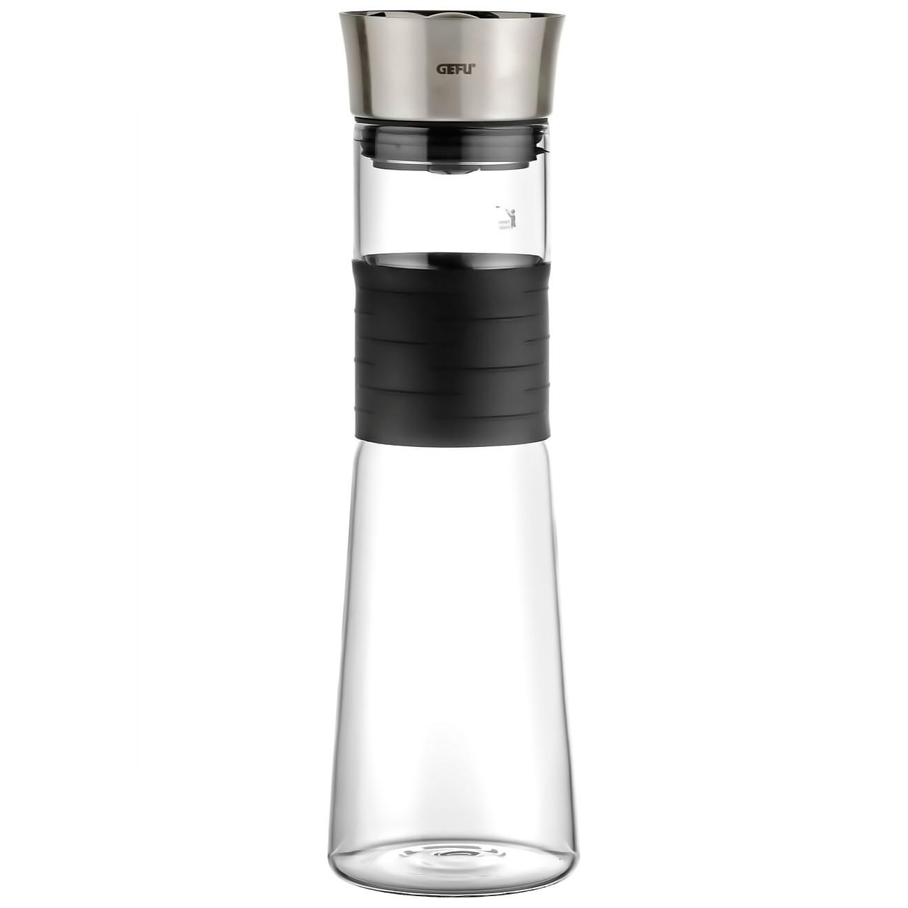 Type de produit : Carafe, Matériau : Verre, Acier inoxydable, Plastique, Couleur détaillée : Transparent, Noir, Capacité : 1 lCarafe au design élégant et ergonomiqueVerseur à 360° permettant de servir sous nimporte quel angleFermeture à boule élégante pour un dosage facileCapacité : 1 litreMatériaux : acier inoxydable de haute qualité / silicone / plastique / verre borosilicateConvient au lave-vaisselle