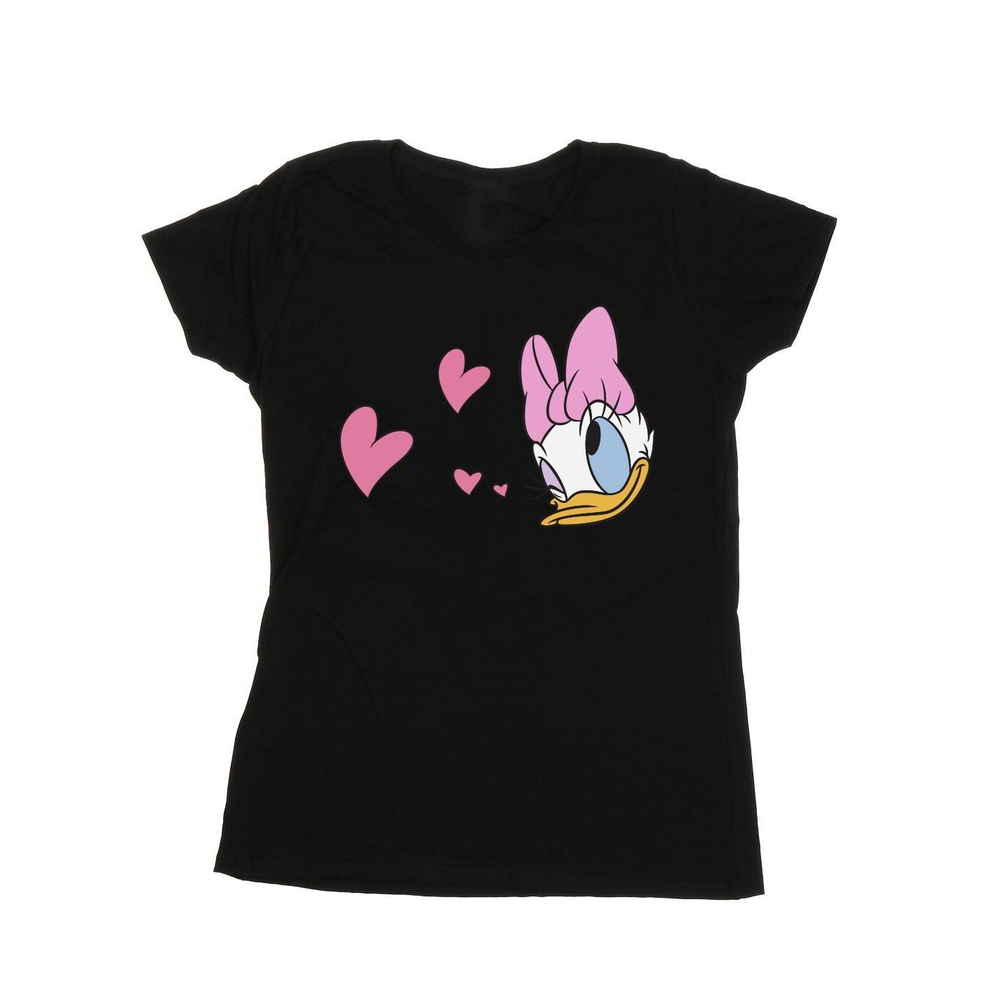 Ce T-shirt présente un charmant imprimé graphique de Daisy Duck avec des cœurs roses, offrant un look ludique et élégant. Le col rond classique et les manches courtes assurent un ajustement confortable pour un usage quotidien.