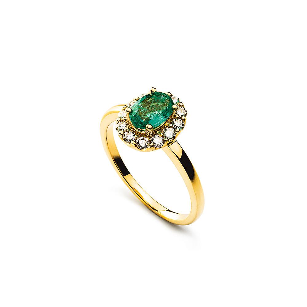 MUAU Schmuck Bague en or jaune 750 émeraude 0,94ct. diamants 0,40ct.