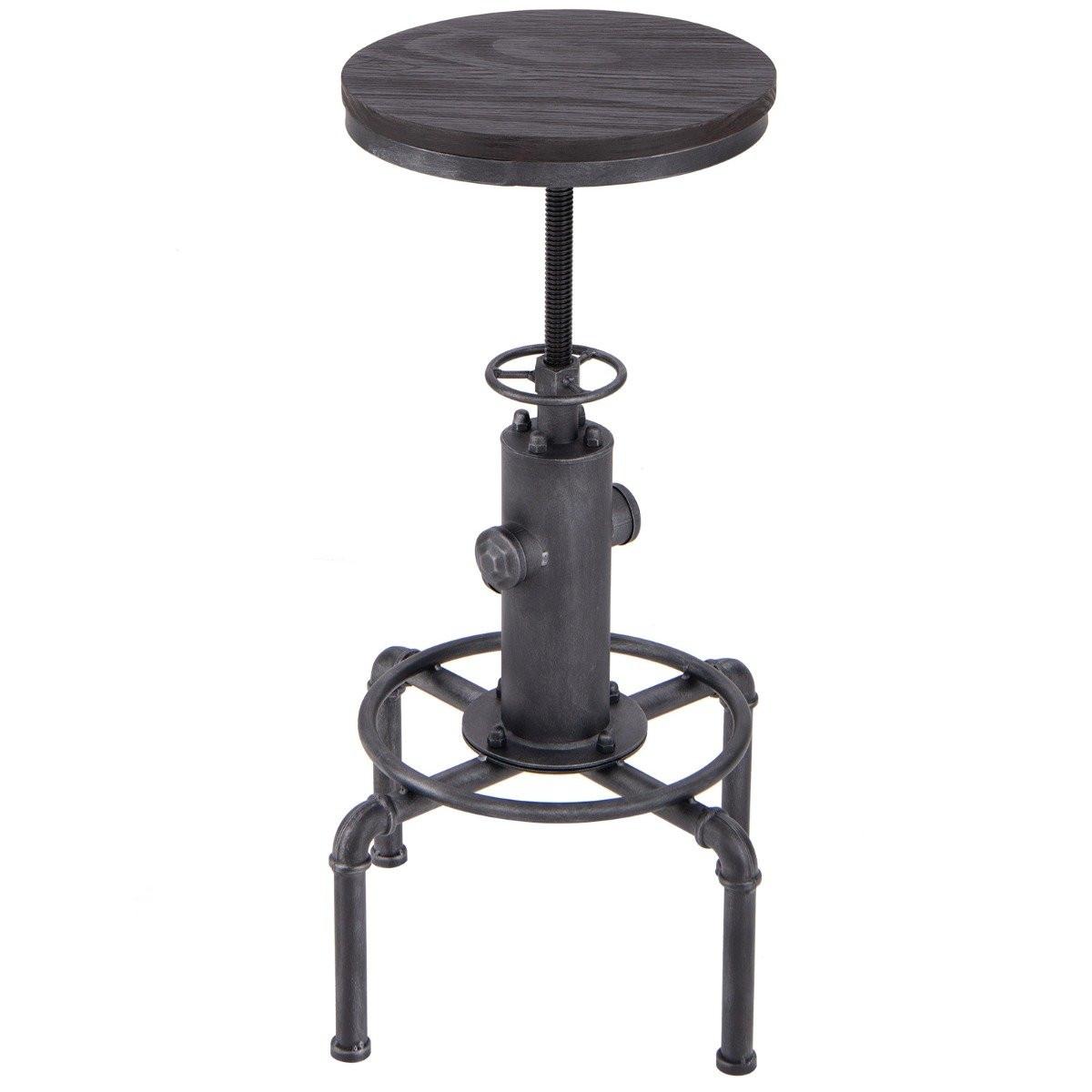 Northix Tabouret de bar réglable en hauteur 59,5-75 cm, chaise de bar en bois et métal