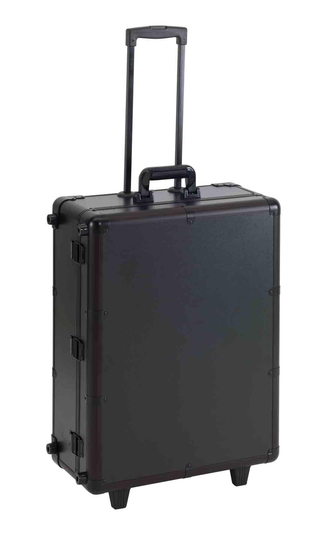 - en aluminium avec surface PUR- 1 miroir avec éclairage dans le couvercle- 6 douilles de lampe (E27) pour 60 watt - variateur pour une intensité de lumière réglable- prise universelle- pour 220-250 Volt / 50 Hz- la Variobox dans le compartiment principal comprend 4 compartiments retirables et un compartiment sur la face inférieure- compartiment en haut avec couvercle transparent verrouiable- la Variobox peut être retirée complètement- compartiments avec sangles élastiques sur les côtés- 4 pieds télescopiques dans un compartiment séparé (longuer: 82-93 cm ajustable)- 2 serrures à clé- système de trolley ajustable