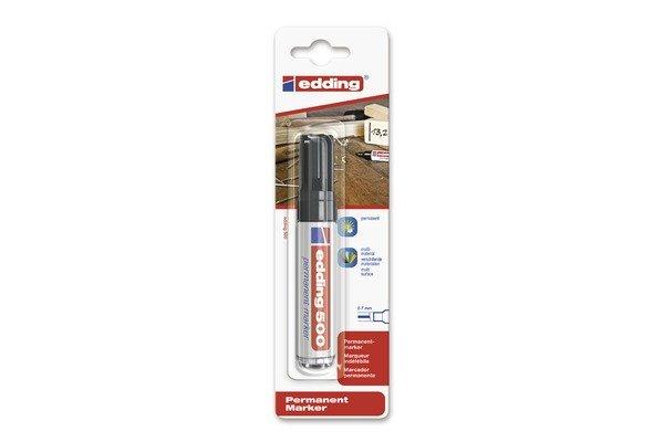 EDDING 500 - Permanentmarker edding 500 - der handliche und robuste Permanentmarker! Zum Beschriften, Markieren und Kennzeichnen von fast allen Materialien, wie z. B. Metall, Kunststoff und Glas. Lichtbeständig und schnelltrocknend. Wasserfest und abriebbeständig auf fast allen Oberflächen. Geruchsarme Tinte ohne Zusatz von Toluol/Xylol. nachfüllbar mit EDDING-Tusche T-25 Aluschaft schnell trocknend, geruchsarm, licht- und abriebbeständig Sofort anwendbar Ersatzspitzen: Ja
