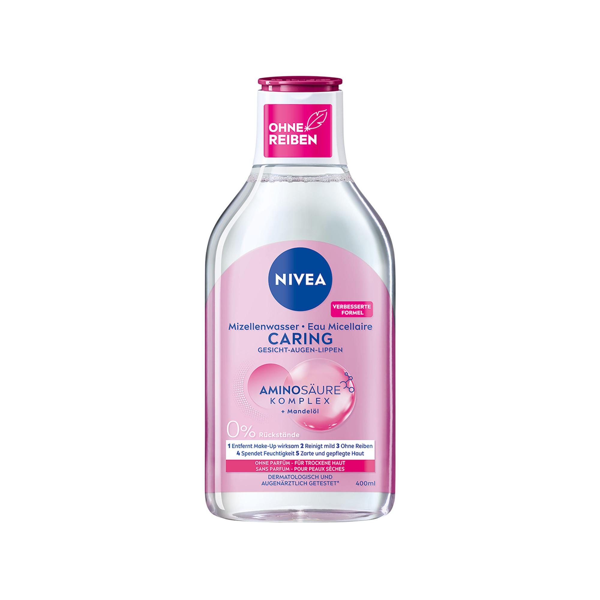 L’Eau Micellaire MicellAIR 5en1 Peaux sèches & sensibles NIVEA est un vrai multi-talent! Elle nettoie en douceur et élimine efficacement le maquillage et le mascara sans frotter pour ne pas agresser la peau. Hydratante, elle prend soin de la peau pour lui procurer une sensation de douceur. La formule délicate et végane à l'huile d'amande naturelle respecte la peau du visage, la nettoie en profondeur et la laisse respirer, en ne laissant aucun résidu de produit. Grâce à sa composition spéciale, cette Eau Micellaire convient aux peaux sèches et sensibles afin d'offrir un soin parfait tout en nettoyant efficacement la peau. Il suffit de verser l'Eau Micellaire sur un coton et de le passer délicatement sur le visage, les yeux et les lèvres, sans frotter, pour éliminer facilement la saleté et les impuretés. Grâce à la technologie micellaire, les petites micelles capturent les particules de saleté, ce qui permet un nettoyage apaisant.