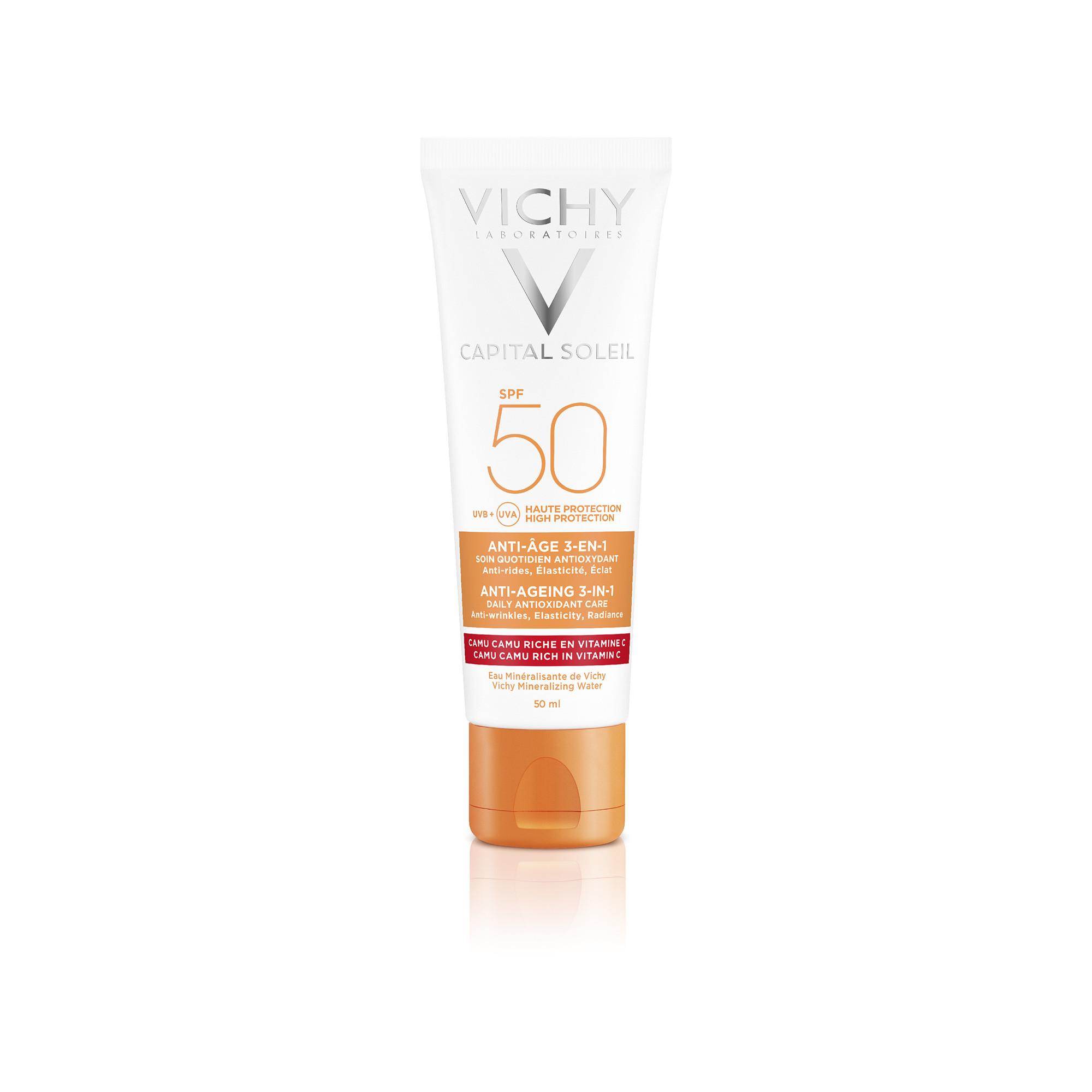VICHY, Ideal Soleil Creme Anti-Age SPF50, Capital Soleil 3-en-1 Soin Solaire Anti-Âge SPF 50
