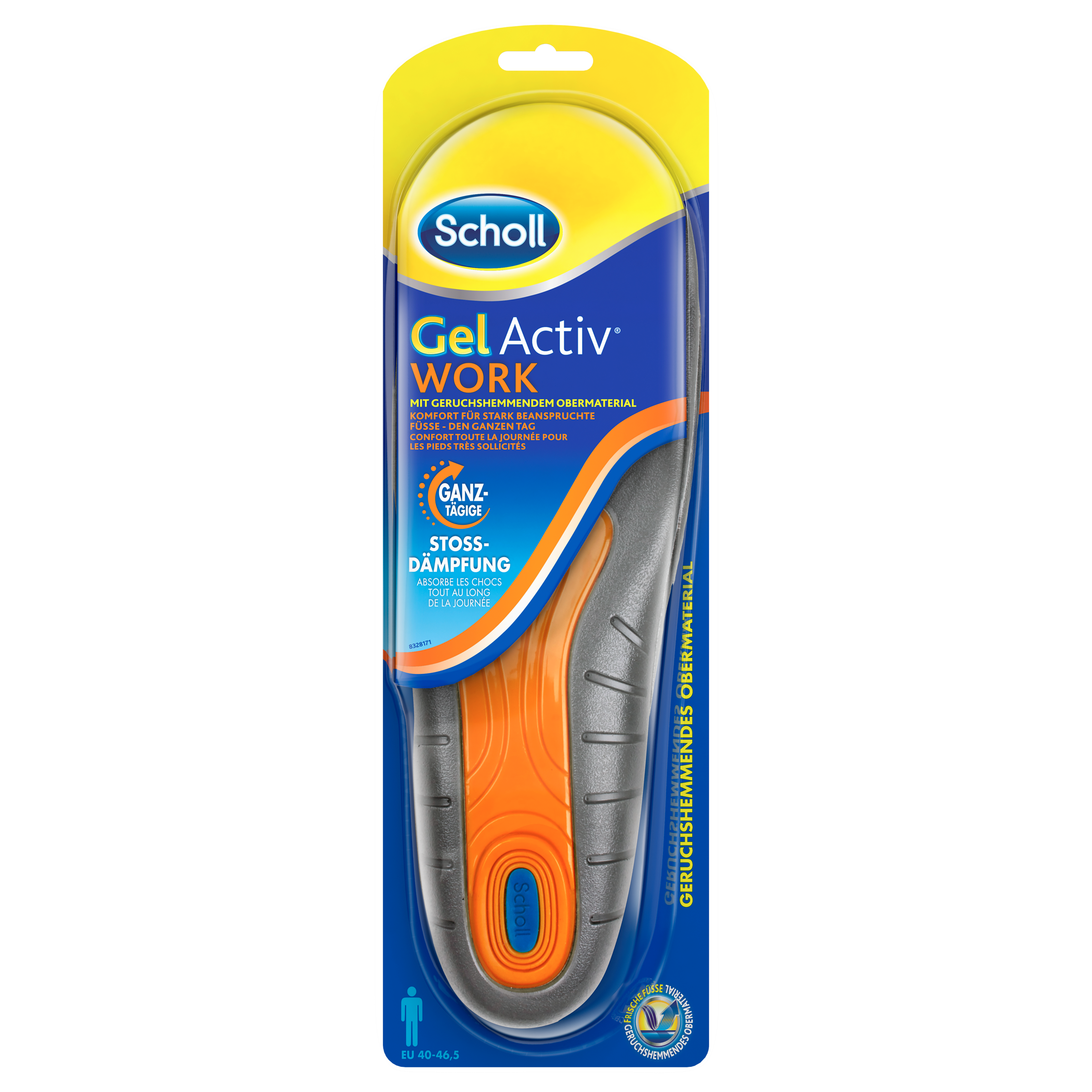 Grâce aux semelles intérieures GelActiv® innovantes de Scholl, les pieds fatigués et douloureux ne sont plus qu'un mauvais souvenir. Toute personne, qui reste plusieurs heures debout dans l'exercice de son activité professionnelle, connait le soir les sensations de douleurs et de fatigue aux pieds. Grâce aux semelles intérieures Work bien rembourrées de Scholl GelActiv®, vos pieds sont tout simplement au frais et reposés ; même après plusieurs heures de travail pénibles.