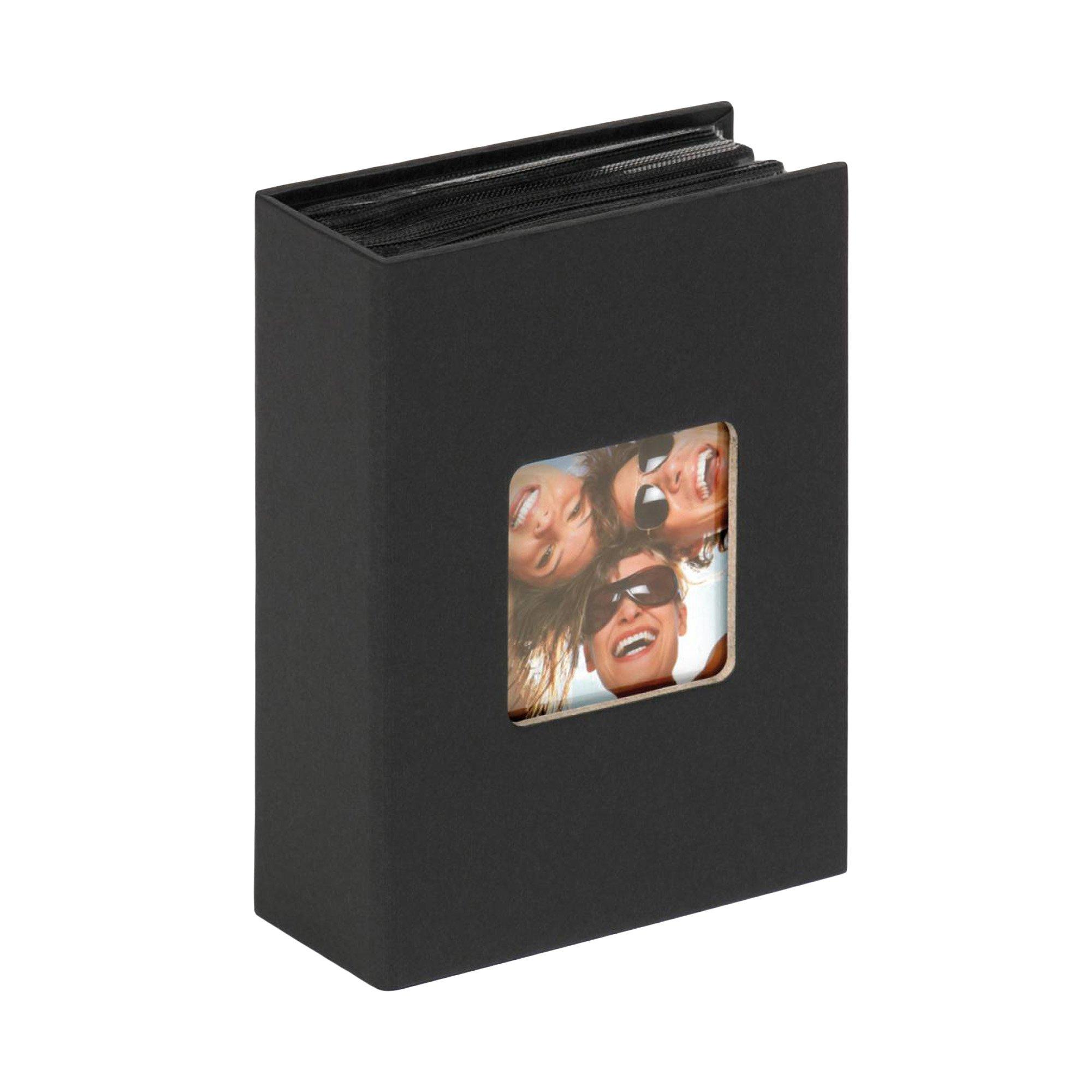 Minimaxalbum Fun 100 photos 10 x 15 cm noir, couverture rigide, papier couverture, côtés noirs, découpe carrée 6 x 6 cm sur le devant pour une photo personnelle.