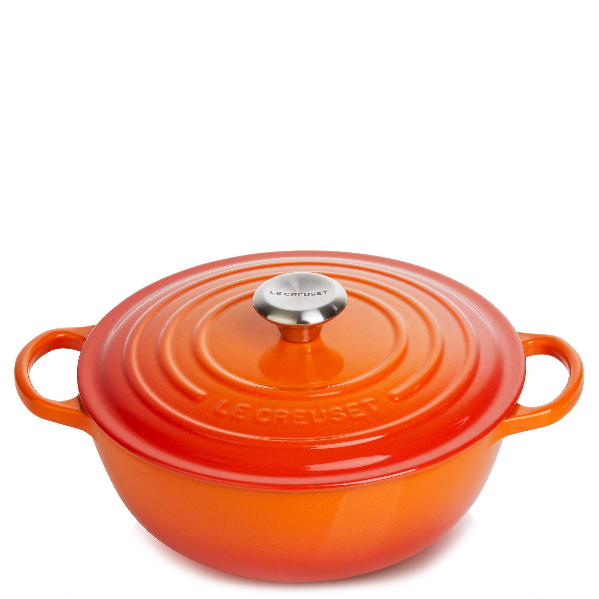 La Marmite, la casserole familiale, a une face intérieure incurvée sans coins ni angles. Cela simplifie le mélange. Idéale pour les ragoûts et les plats de viande. Les cocottes spéciales de Le Creuset se distinguent par leurs formes variées et leurs possibilités d'applications polyvalentes. Les cocottes colorées sont également parfaites pour servir à table : d'une part, la fonte est un excellent accumulateur de chaleur qui fait en sorte que le contenu de la cocotte reste chaud pendant longtemps et d'autre part, les couleurs vives s'intègrent parfaitement à une table de fête décorée.