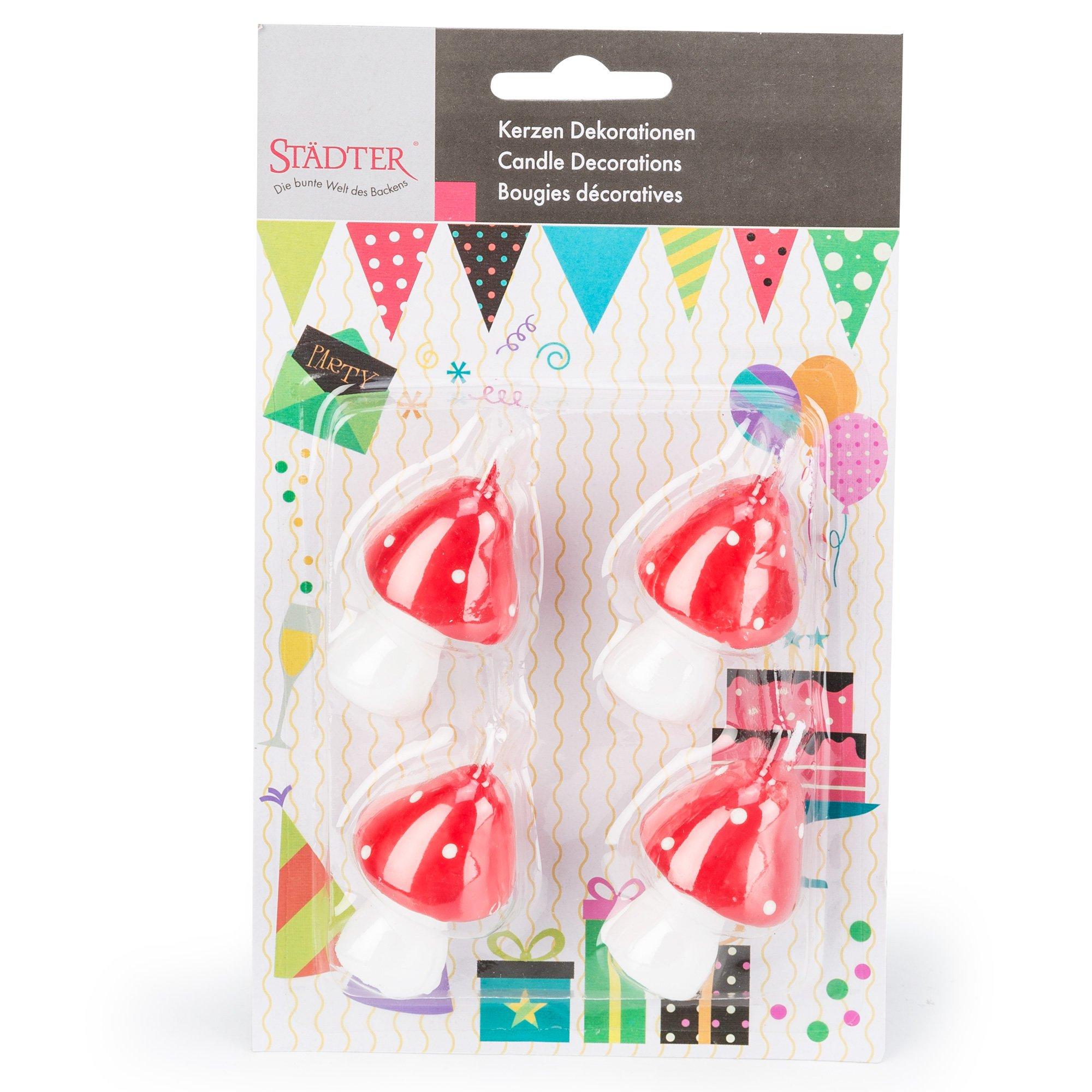 La finition parfaite de votre gâteau. Ces bougies en forme d'amanites tue-mouches sont particulières.