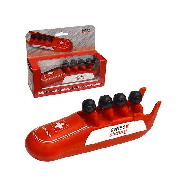 Bob Suisse à 4, pour piste de neige, dans boîte transparente, officiellement autorisé par le Bobverband Suisse.