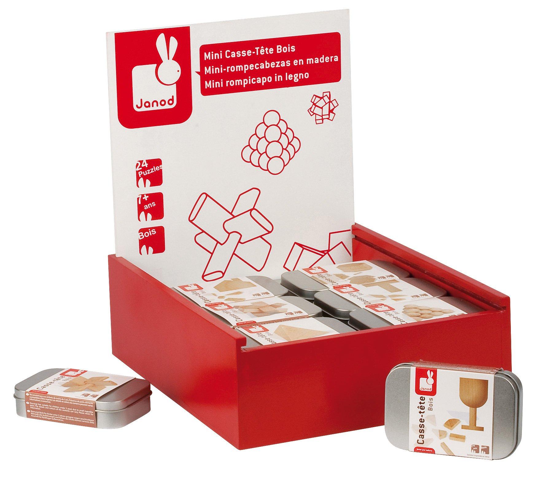 Display de 24 mini casse tete en bois vendus dans une très belle boite en métal. 12 modèles de casse tete avec solution imprimée à l'intérieur du fourreau. Display en bois livré monté et rempli.