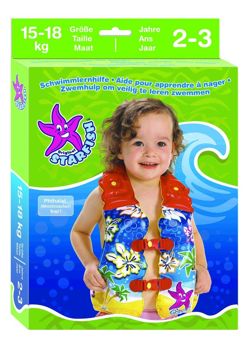 Starfish® design innovant et breveté avec trois chambres à air. La seule aide à la natation offrant une liberté de mouvement optimale, permettant à votre enfant de bouger librement les bras lorsqu'il nage. Le soutien amovible du menton permet de maintenir la tête hors de l'eau en toute sécurité, même chez les très jeunes enfants. Les fermetures de sécurité, les quatre chambres à air et le système d'ajustement Velcro optimisé garantissent une sécurité et un confort maximum lors du port ! Les couleurs vives font également de Starfish un véritable accroche-regard - pour les petites stars de la piscine ! Avec les conseils d'aide à la natation pour Starfish Kids joints à chaque produit, apprendre à nager devient un jeu d'enfant. La brochure pédagogique sportive, mais néanmoins compréhensible pour les parents et les enfants, contient des conseils importants et surtout utiles sur la manière d'apprendre à nager aux enfants de façon amusante et imagée.