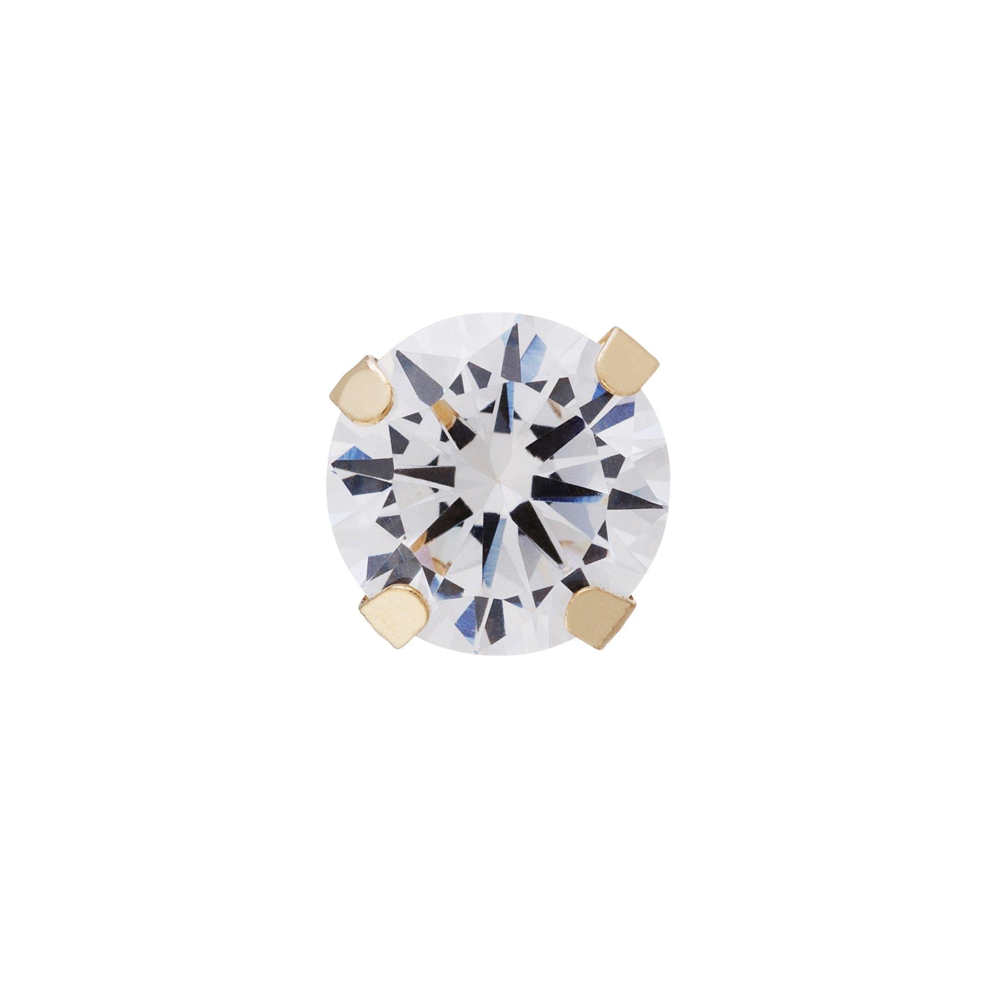 Vous serez séduit par la boucle d'oreille individuelle en or jaune 18 carats de la marque Maddison. Le zircon poli est la pièce maîtresse de cet accessoire. Quatre griffes le tiennent afin que la lumière puisse tomber sur la pierre de tous les côtés et la faire briller.
