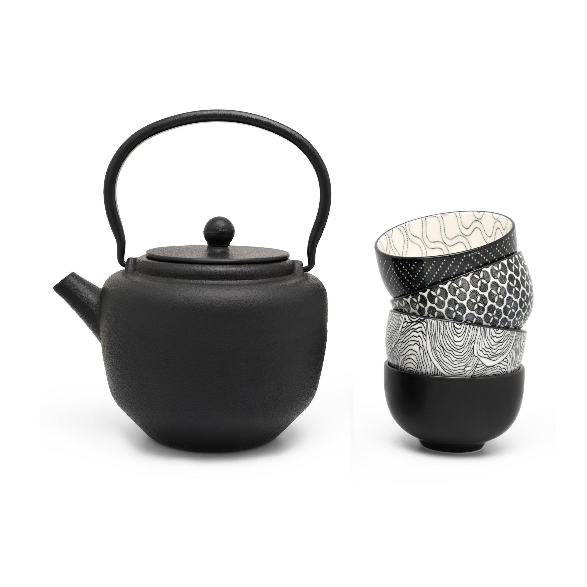 Ce serait un cadeau de Noël raffiné pour un amateur de thé : cet ensemble de Bredemeijer est composé d'une théière asiatique en fonte avec un filtre à thé et de quatre tasses à motifs magnifiques.