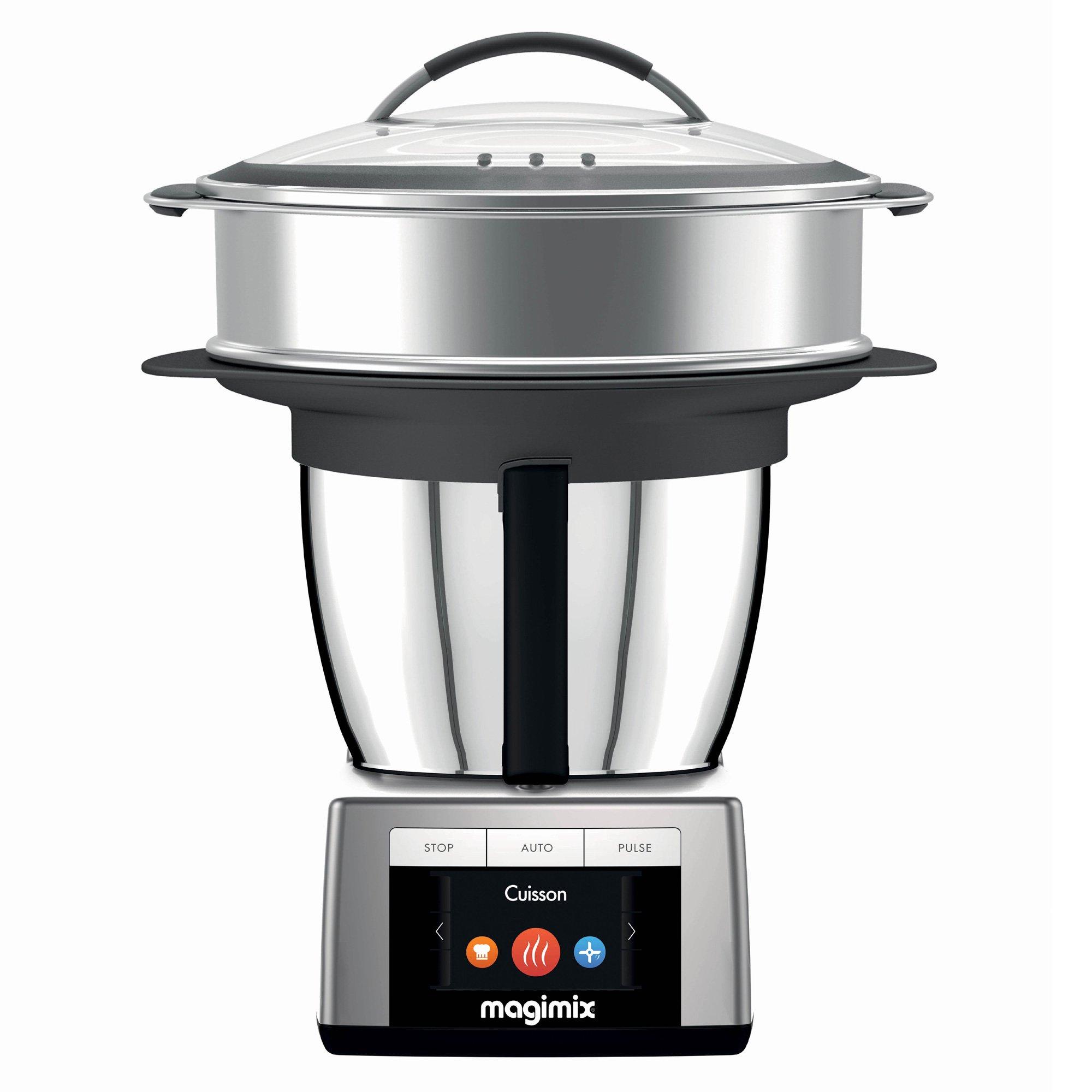 Un cuiseur à vapeur est indispensable dans chaque cuisine. Ce modèle de la marque Magimix est en acier inoxydable tandis que le couvercle est en verre. Avec cet ustensile de cuisine, le poisson reste savoureux, la viande tendre et les légumes croquants - pour le plaisir de cuisiner.