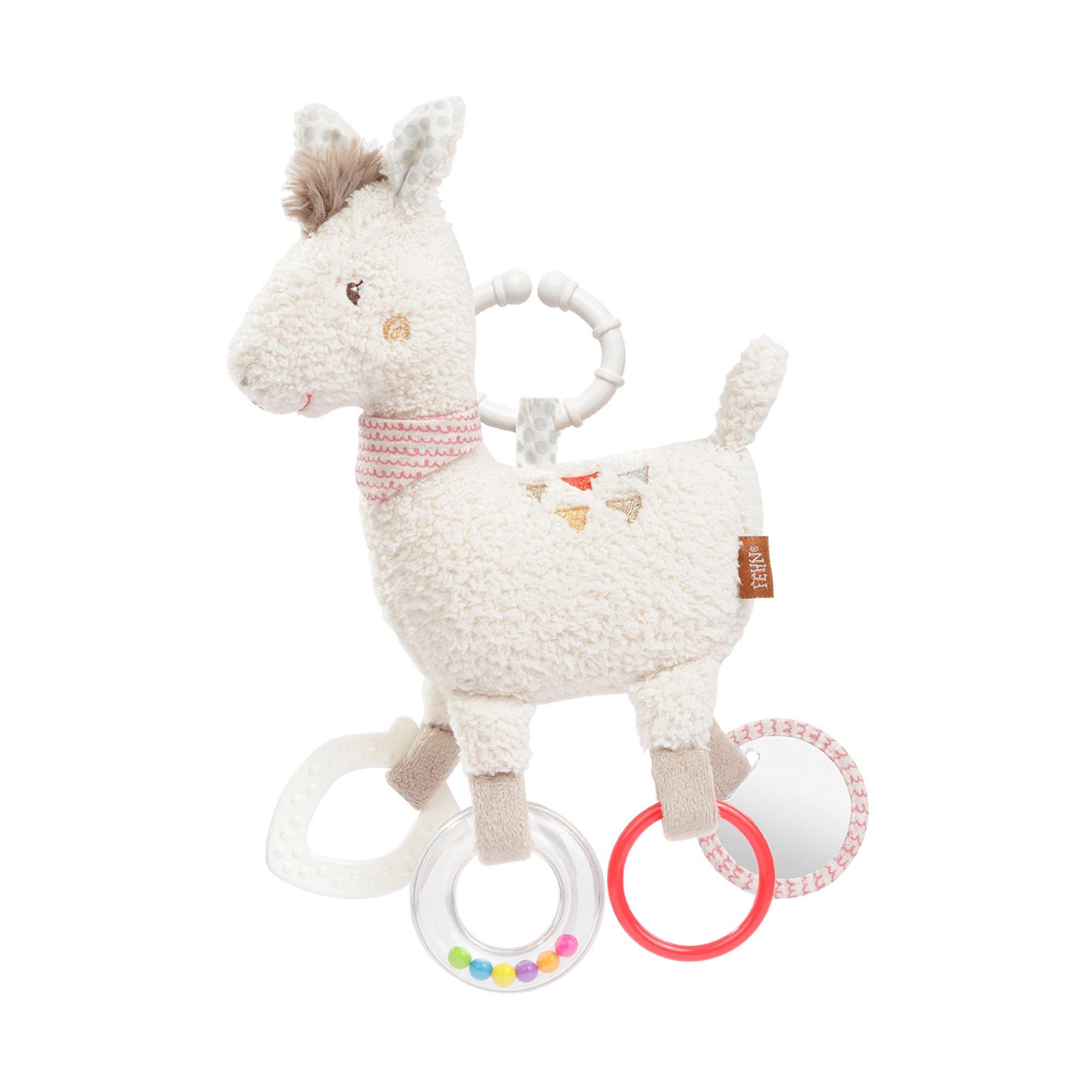 Le lama mignon est en liberté ! Le jouet Activity de Fehn peut être attaché de manière variable et stimule les sens des petits avec des formes, structures et effets différents.